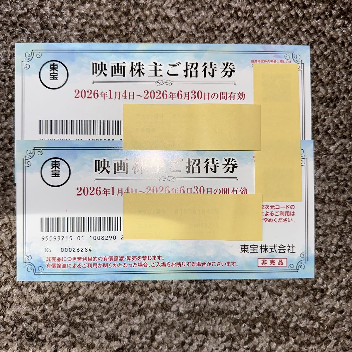 東宝 株主優待券 TOHOシネマズ 映画株主ご招待券 2枚 2026年6月30日まで