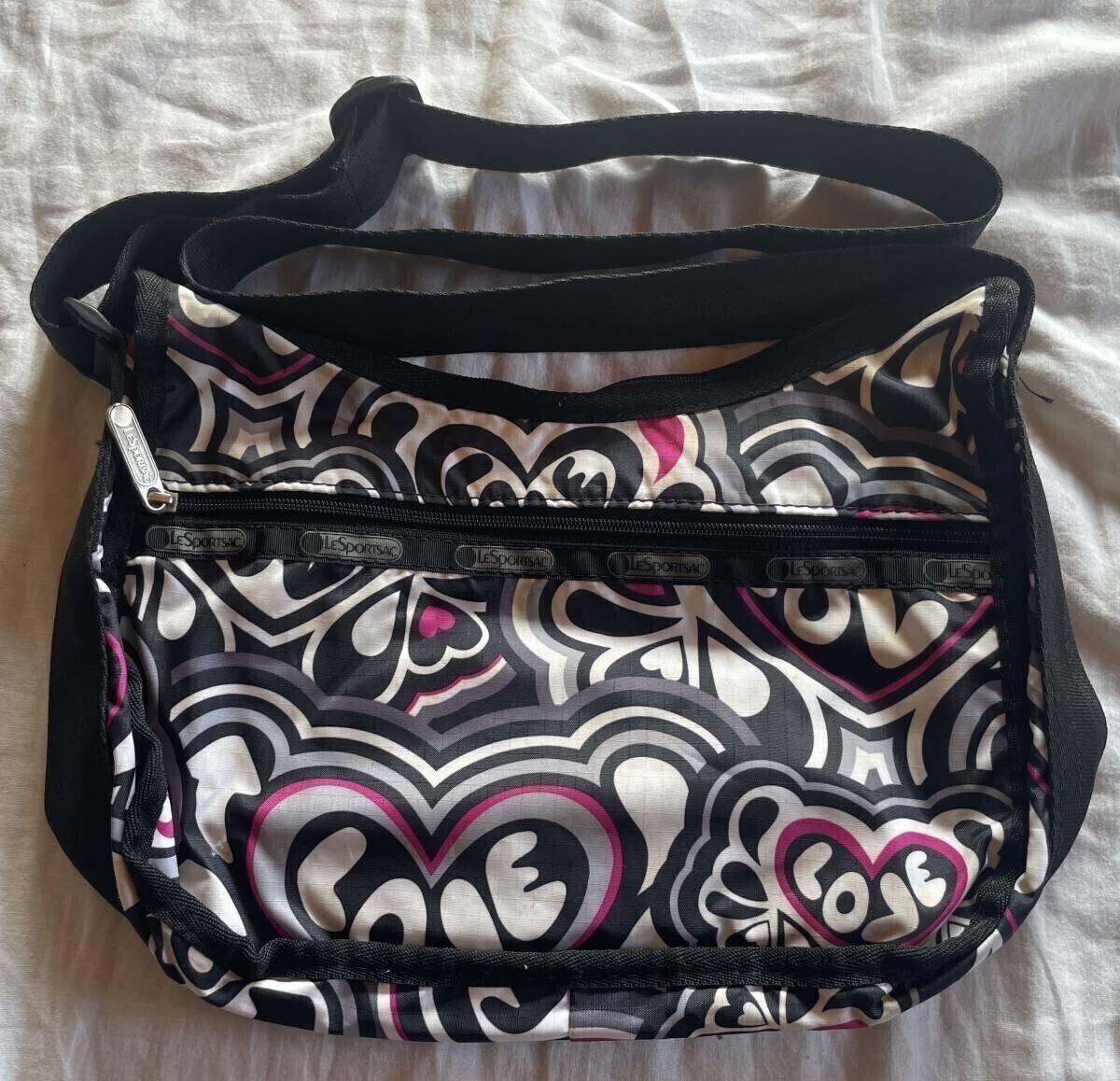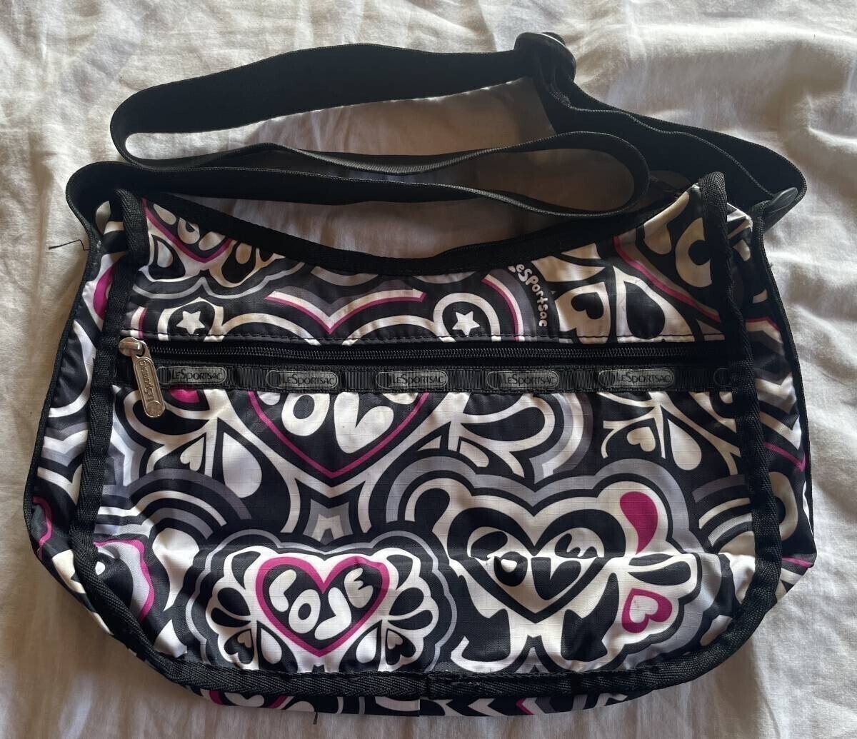 レスポートサック ポーチ ショルダーバッグ モノクロ ハート ピンク