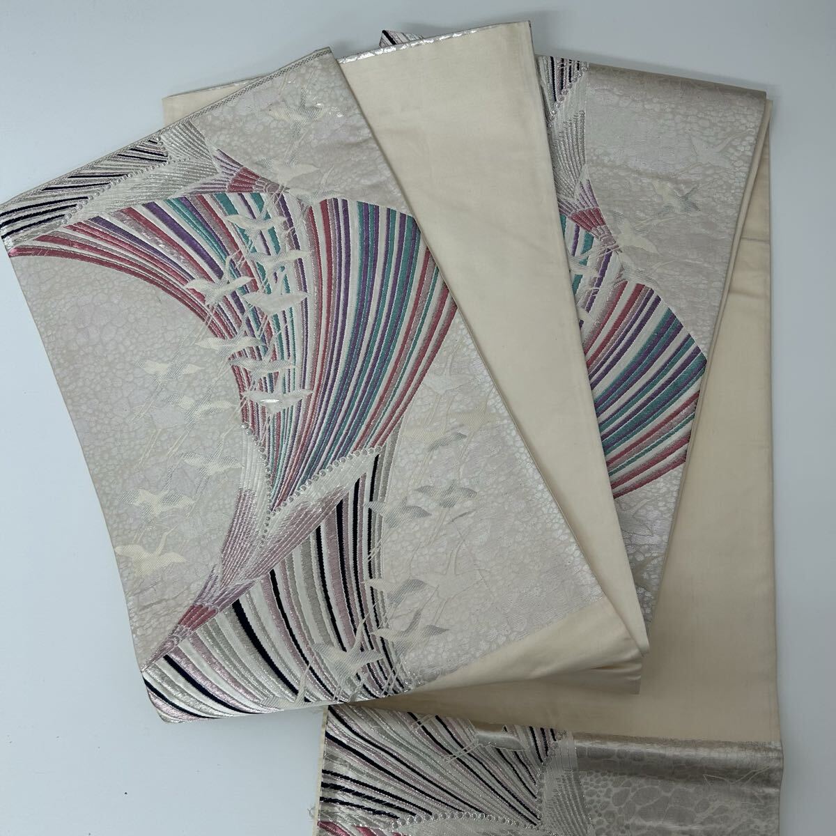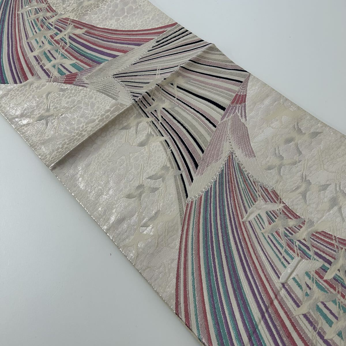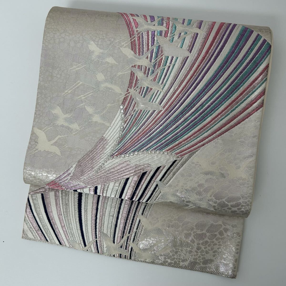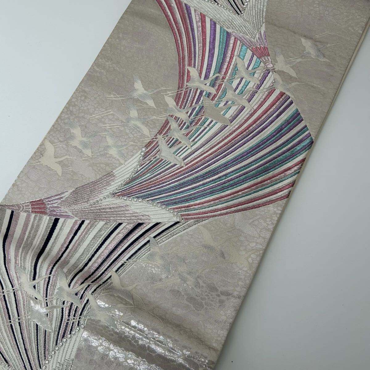 【楓】袋帯 正絹 美しい加工 舞う鶴 六通 KK-2527