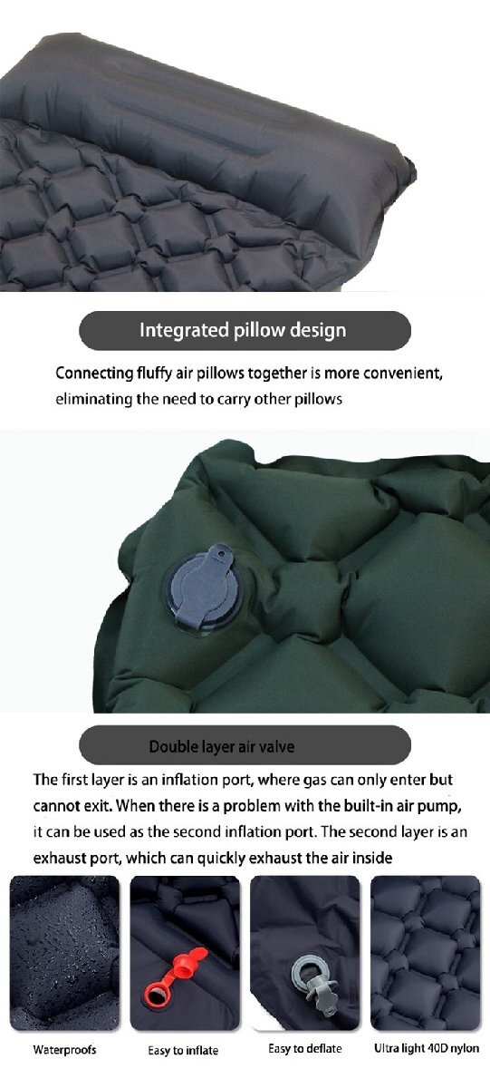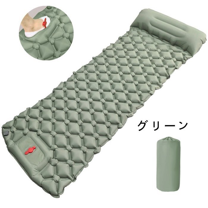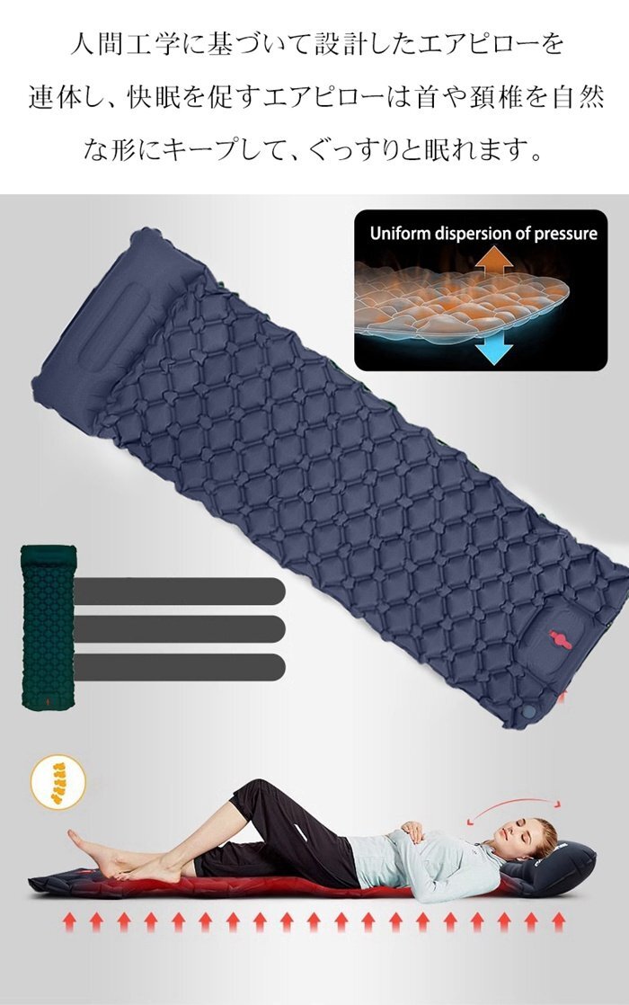 エアーマット キャンプ マット 枕付き お花見に 足踏み式 無限連結可能 車中泊 防災 厚手 枕付き 超軽量 コンパクト 防水 寝袋 持ち運び便利 簡単収納 災害 登山 テント用 キャンプ用品 災害マット 防災対策にも!