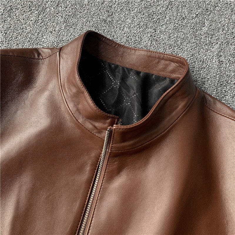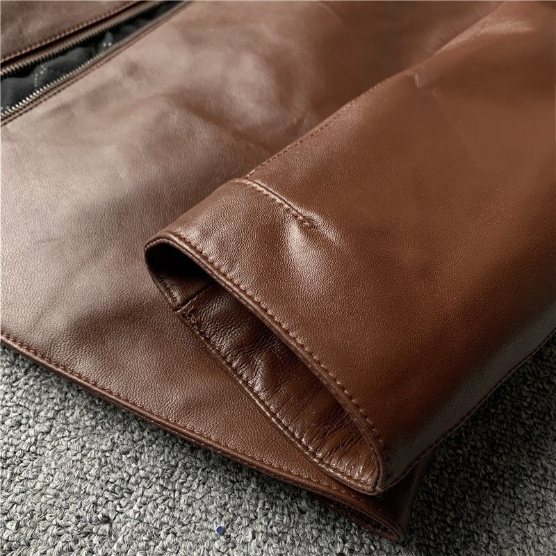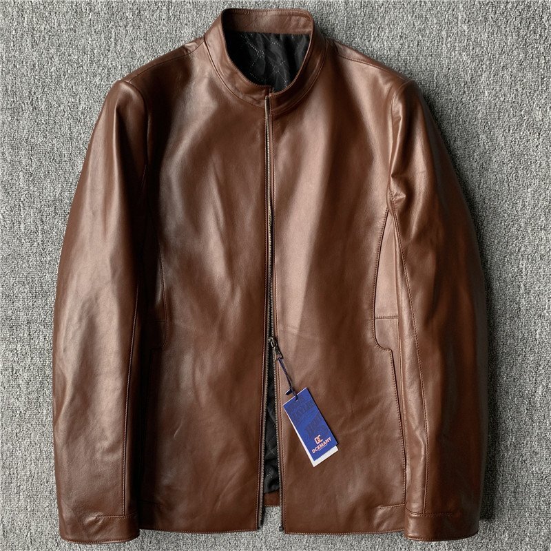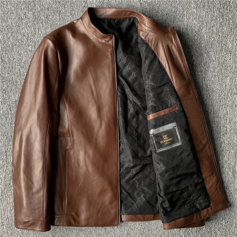 新品 DCKMANY イタリアレザー ラムレザー 羊革 中綿レザージャケット アウター 紳士 本革 メンズ革ジャン ショートライダース 茶 E5569-L