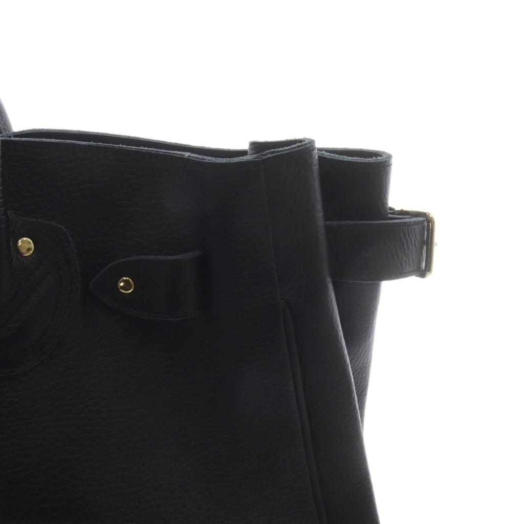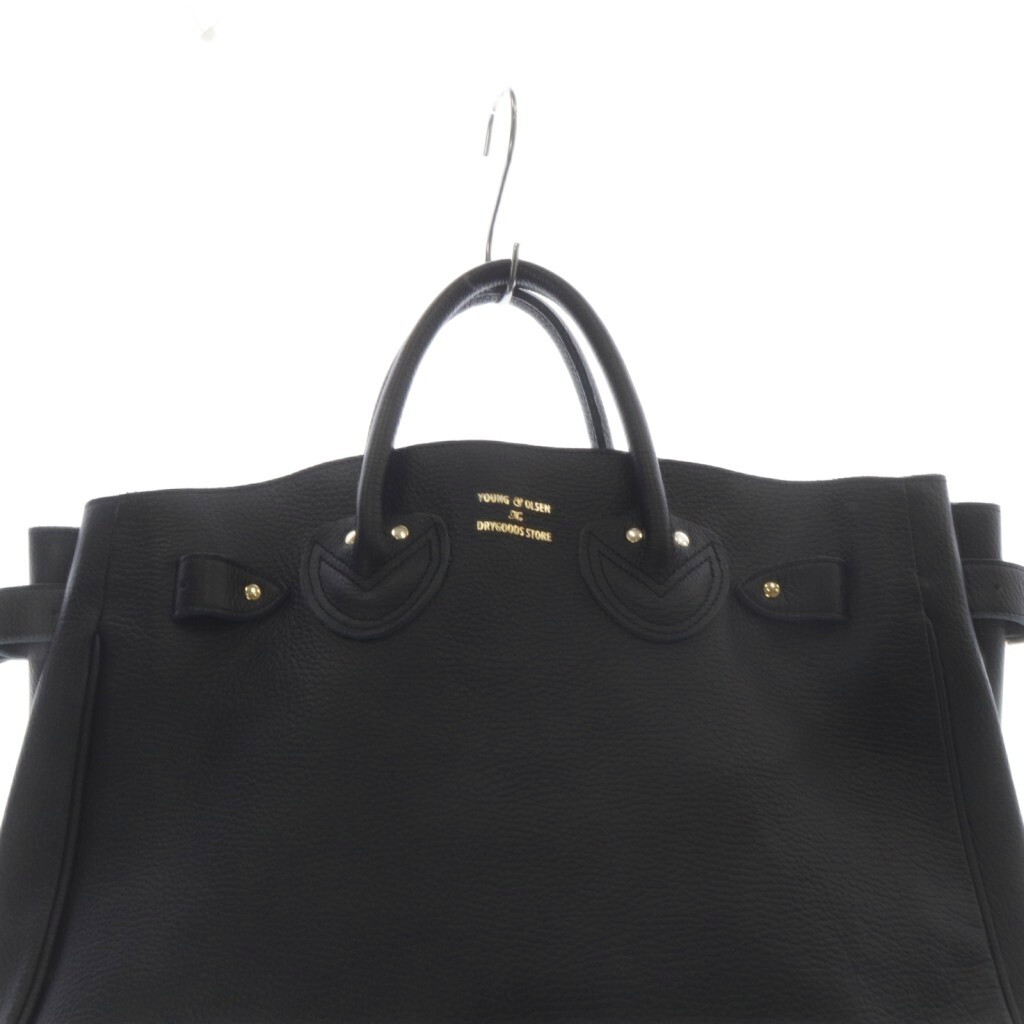 ヤングアンドオルセン YOUNG & OLSEN エンボス ベルテッド トートバッグ ハンドバッグ ロゴ レザー 黒 ブラック /SR レディース