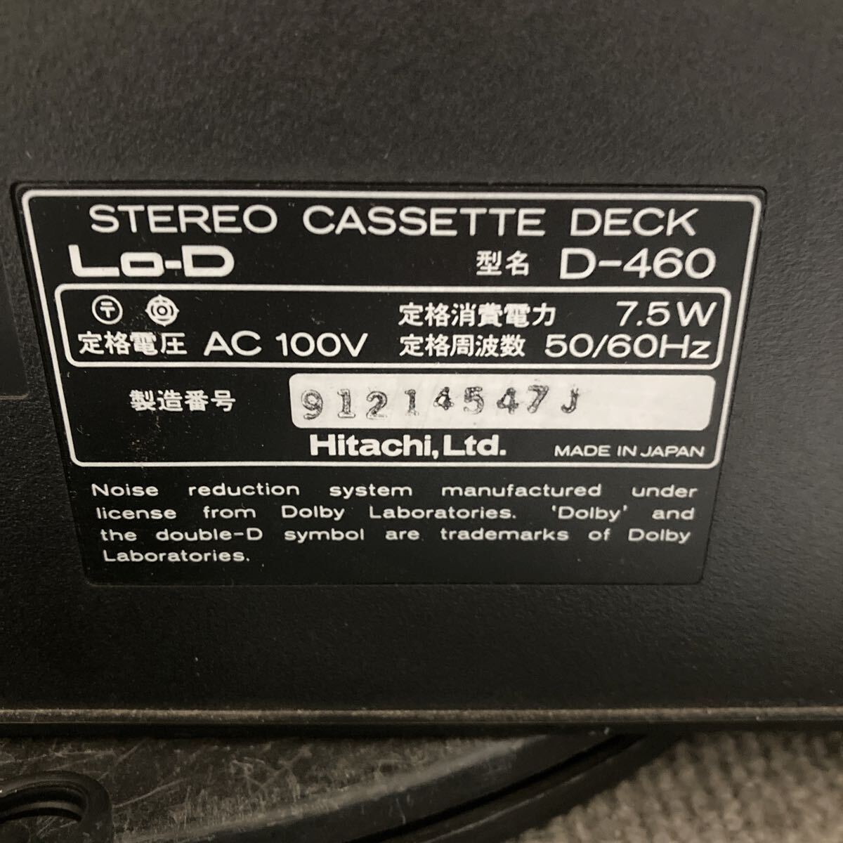 KD12-80 激安 カセットデッキ HITACHI Lo-D STEREO CASSETTE DECK D-460 簡易動作確認済み 中古現状品