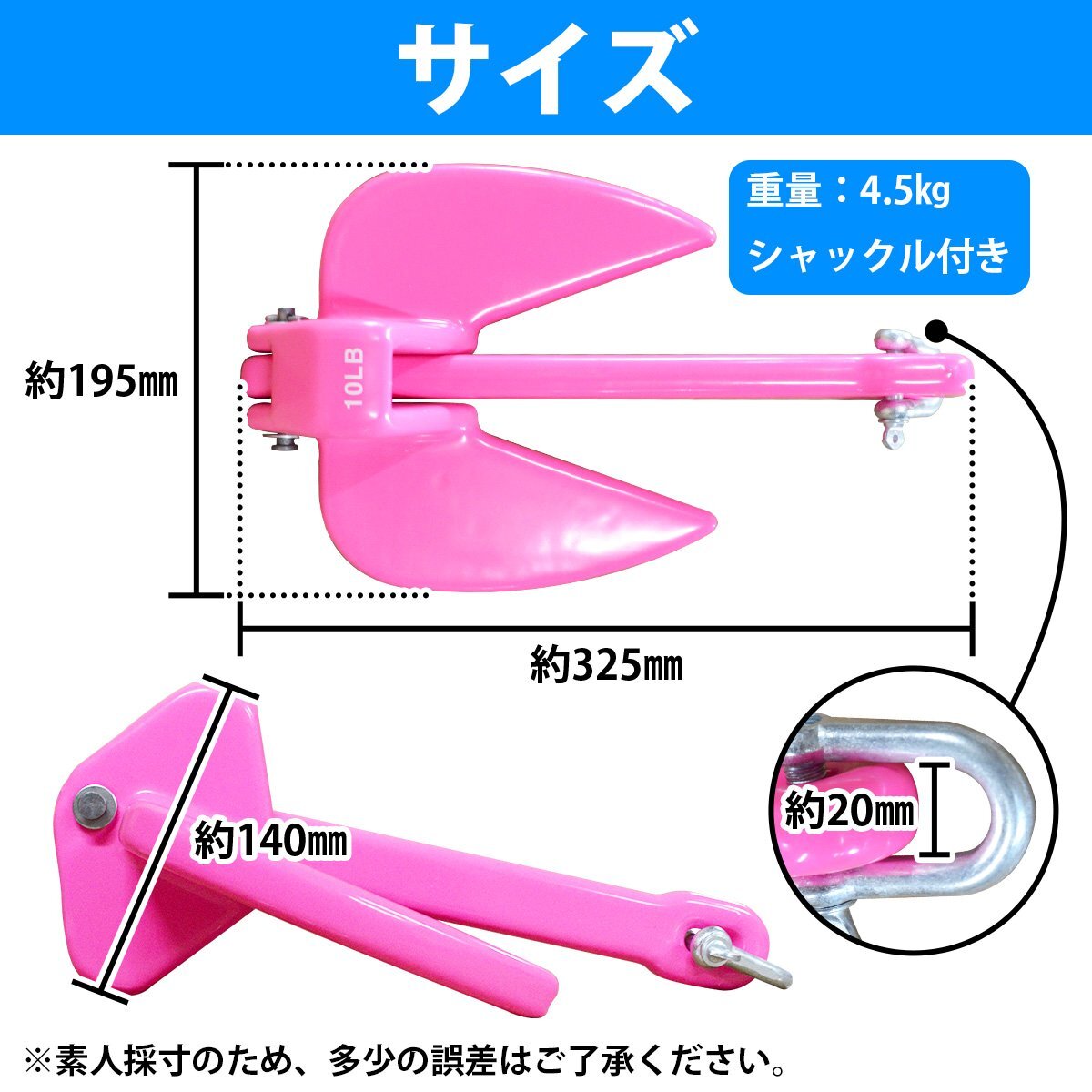 10LB 4.5kg 4.5キロ アンカー 錆に強い PVCコート ジェットスキー ゴムボート 船 紅 ピンク アンカー 錘 碇 爪型