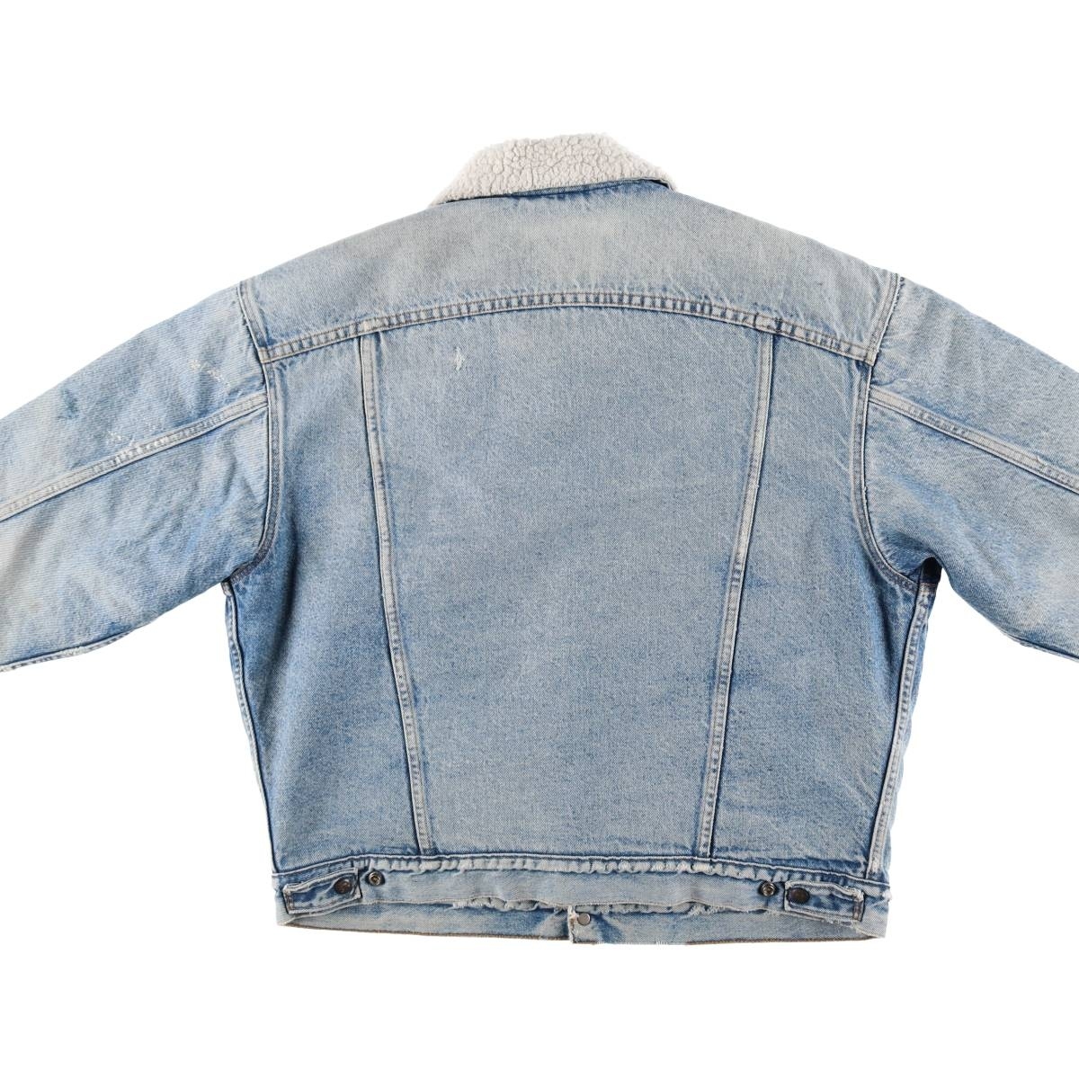 | 表記サイズ: L 着丈: 64cm 身幅: 63cm 肩幅: 58cm 袖丈: 60cm ![]() | ![]() ランク:C USEDデニムですので使用感、擦れ、色落ちなどございますが、まだまだご愛用していただけます。 古着という事をご理解の上ご注文よろしくお願いします。 【状態追記】 ●前、全体に汚れ 左肩・両袖先・胸部・両ポケット口・裾に擦れ 両袖先に破れ・リペア跡 左右サイドポケット内側に汚れ ●後、首元・両肩・両腕・両袖先・裾に汚れ 右肩・背中・右腕・左袖先・裾に擦れ 右袖先に破れ・リペア跡 左袖先にリペア跡 ●内側、首元・前立て全体・裾・両腕全体・両袖先に汚れ 両腕・裾に糸抜け 襟ぐり(ループ)・裾に擦れ 左腕に劣化 両袖先・裾に破れ |
