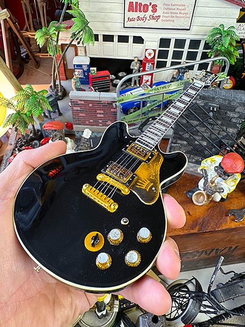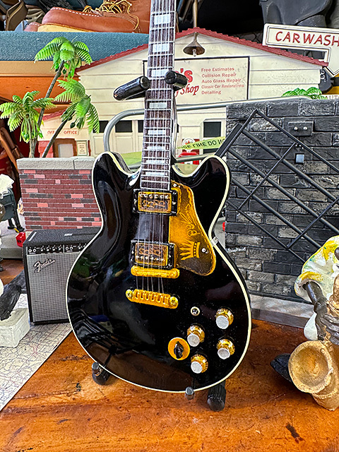 キング自身が「ルシール」と名付けて愛用していたギブソンES-345を、1/4スケールで精巧に再現したミニギターレプリカです。