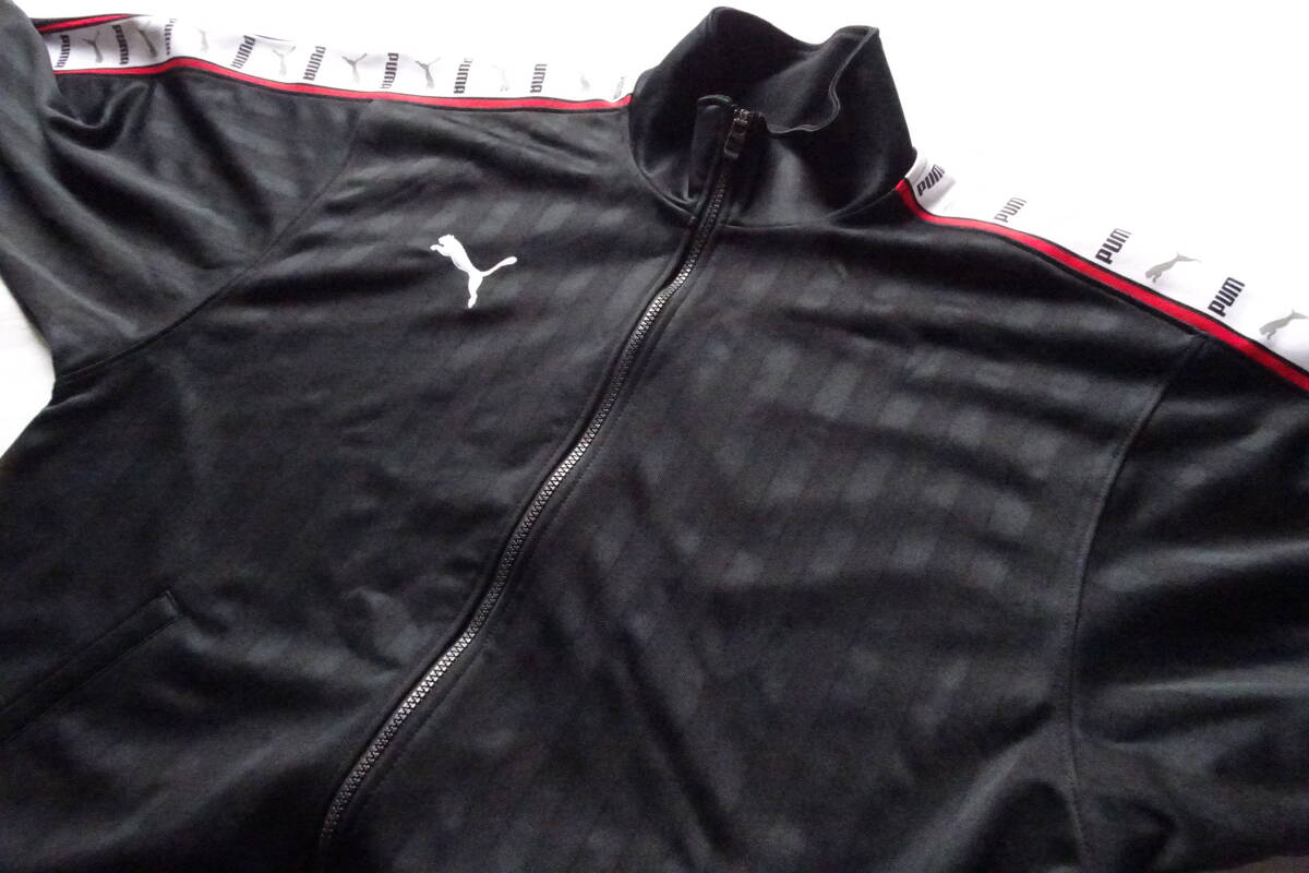 PUMA/プーマ/862216/長袖トラックジャケット/ジャージ素材/同色ストライプ柄/前ジップアップ/スポーツ/黒/ブラック/XOサイズ(12/2R7)