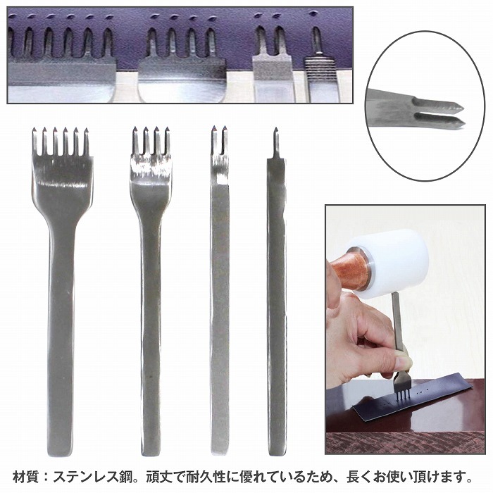 【送料無料】菱目打ち 3mm ピッチ 4本 セット レザークラフト 道具 工具 革製品 皮革 ハンドメイド 縫い穴 手芸 菱目 打ち 用