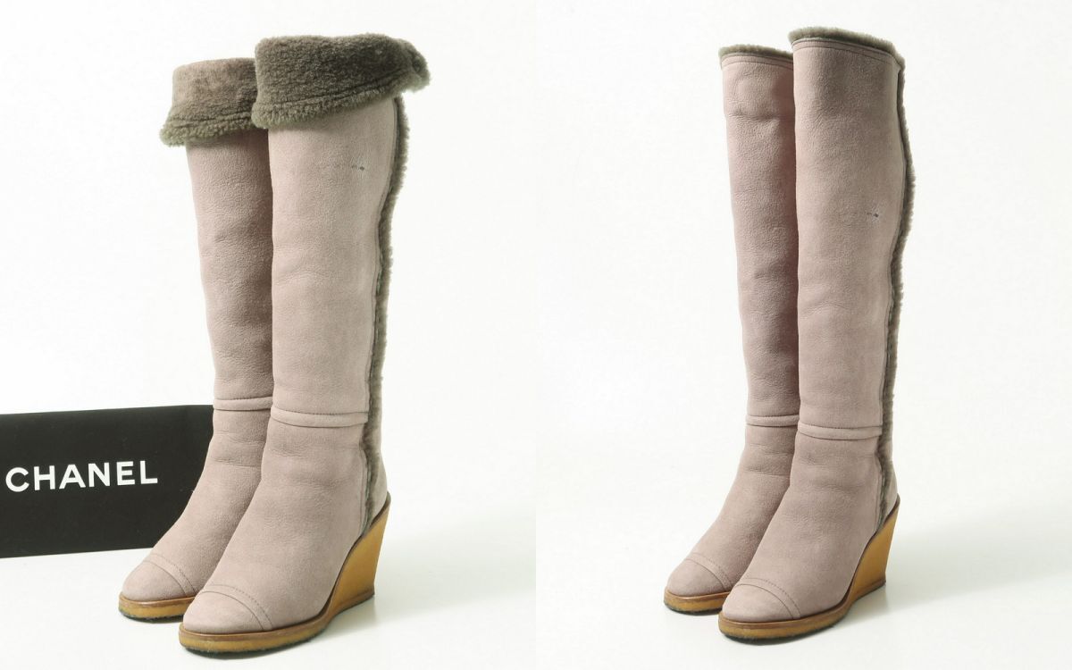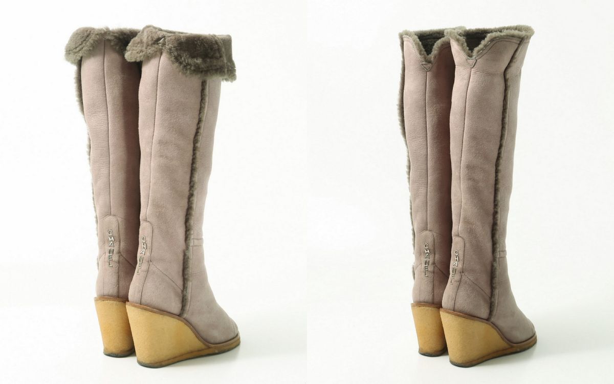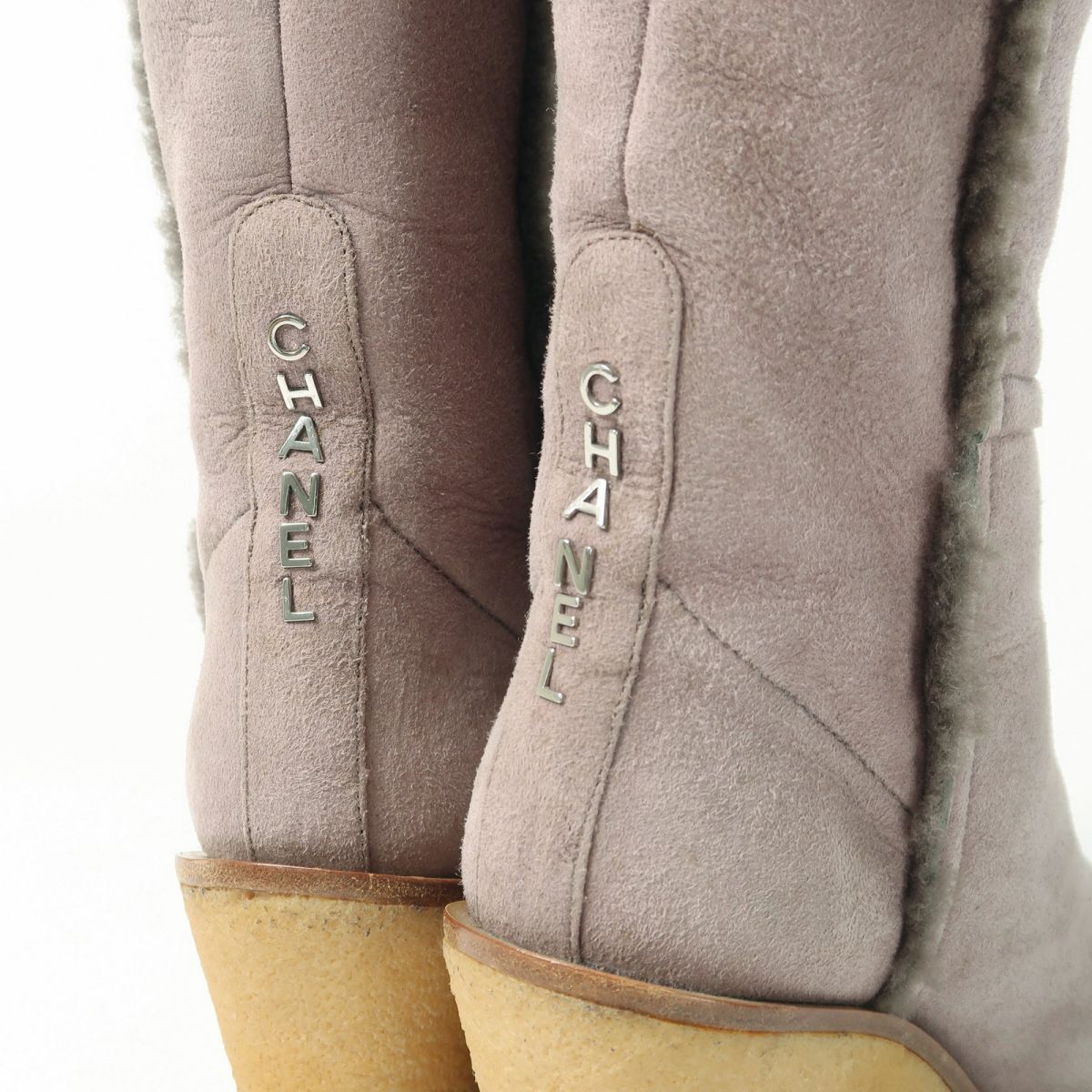 | GR2971△伊製 CHANEL シャネル スエード ウェッジ クレープソール ロゴメタル ムートンブーツ ロングブーツ 靴 グレージュ系 22.5cm相当 | |||