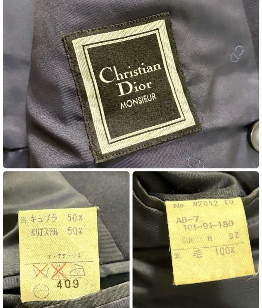 未使用級 Christian Dior クリスチャンディオール 銀ボタン テーラードジャケット ブレザー ダブル 紺ブレ スーツ ジャケット