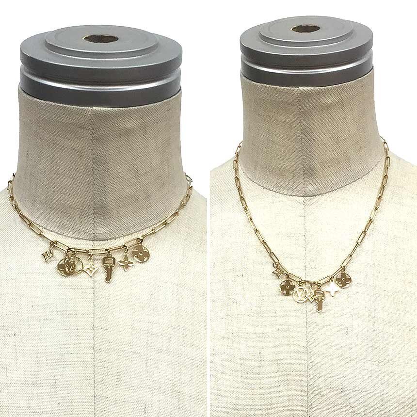| PRコメント | ルイ・ヴィトンらしいLVロックチェーンに、LVサークル、LV キー、モノグラムフラワーチャームが揺れるスペシャルなネックレスです。 |