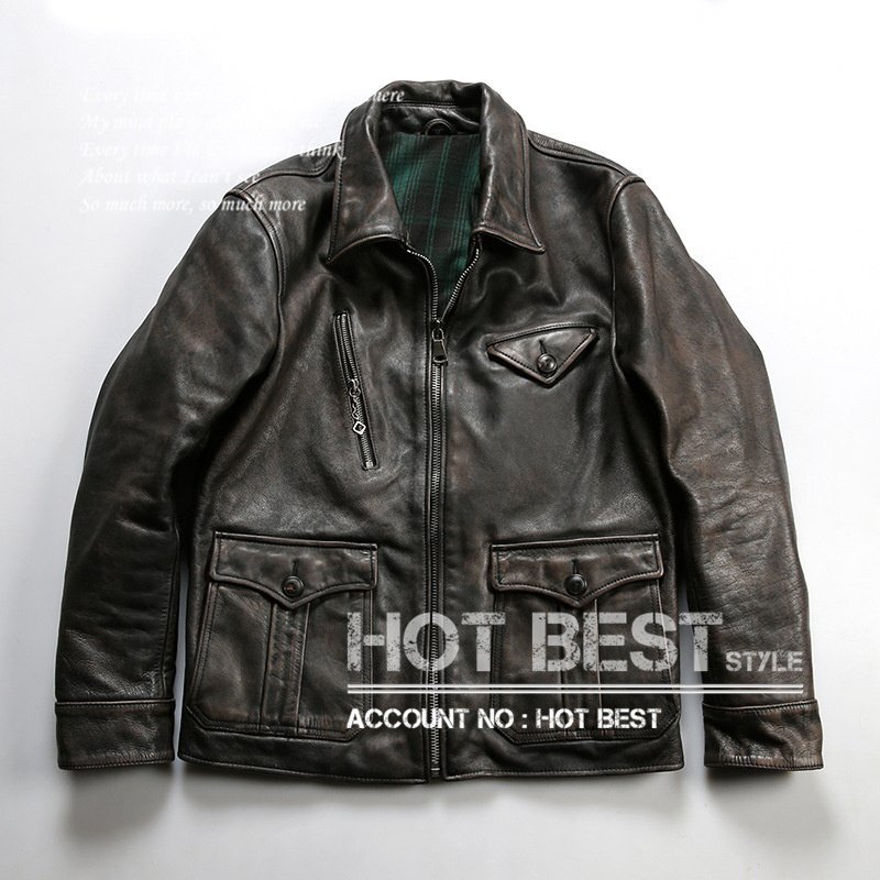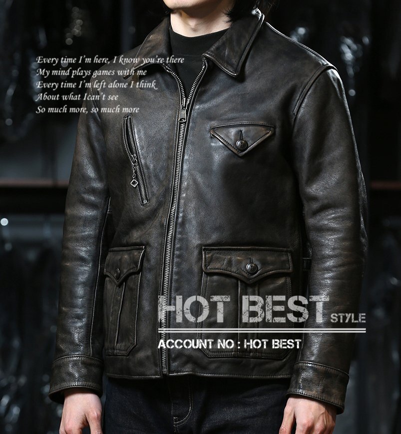 1.4mm カウハイド 20's ニュースマンコート レザージャケット ギフト メンズ 革ジャン 通勤 カーコート ブレーキマン 染料仕上げ ウォッシュ加工 牛革 Y3043/S~5XLサイズ指定可