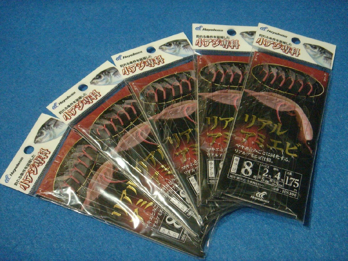「ハヤブサ サビキ 小アジ専科 リアルアミエビ 8号」の5枚セットです。