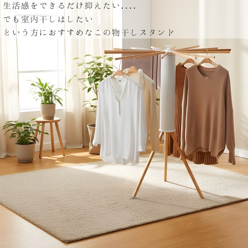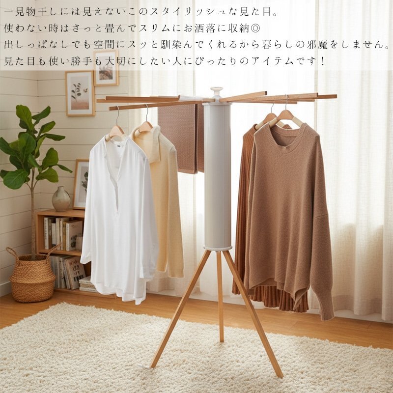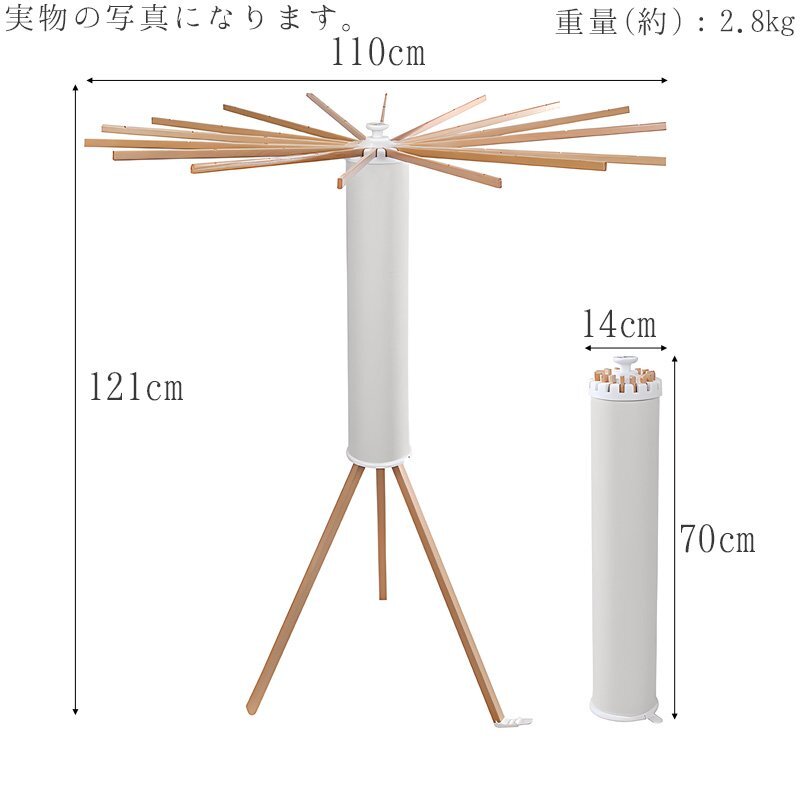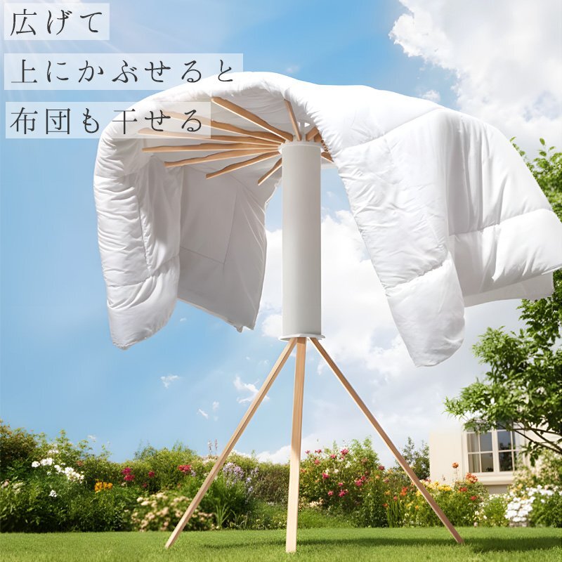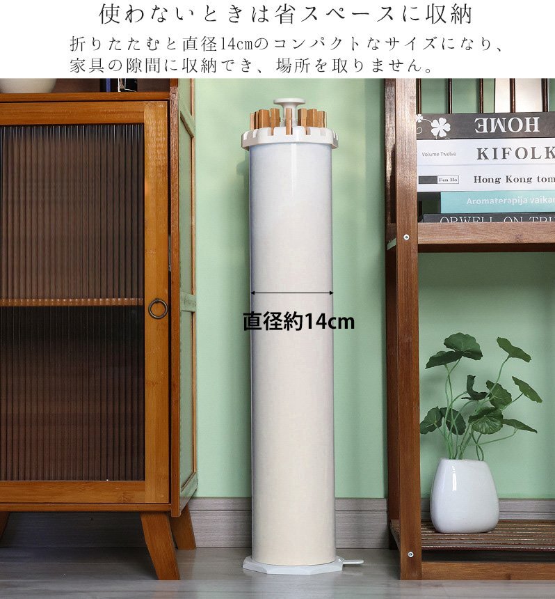 ![]() ■使う場所や洗濯物の量に合わせて形を変えられる 最大16本の物干し竿で大容量の洗濯物にも対応! 狭いスペースでも広いスペースでも、柔軟にサイズを調整でき、必要な分だけ竿を出して使えるので、無駄なく効率よくお洗濯ができます。 さらに、竿の数を減らしてコンパクトに使うことも可能で、家族の人数や場所に応じて使い方を変えることができます。 ■使わないときは省スペースに収納 使わないときは省スペースに収納。折りたたむと直径14cmのコンパクトなサイズになり、家具の隙間に収納でき、場所を取りません。狭い部屋でもスッキリ片付けられ、収納時に邪魔にならず、必要な時にサッと取り出してすぐに使えます。収納時も場所を取らないので、賢くスペースを活用できます。 ■広げて上にかぶせると布団も干せる 広げて上にかぶせると布団も干せるので、忙しい日常でも簡単に大きなアイテムを干すことができます。布団やシーツをしっかりと乾かせる広いスペースを確保でき、風通しが良いため、効率よく乾燥させることができます。 ■商品詳細 カラー:ホワイト サイズ(約):展開時:高さ121cm、横幅110cm / 収納時:高さ70cm、横幅14cm 重量(約):2.8kg 素材:本体:プラスチック / 先端パーツ:アルミ / ハンガー:ブナ材 耐荷重(約):20kg |