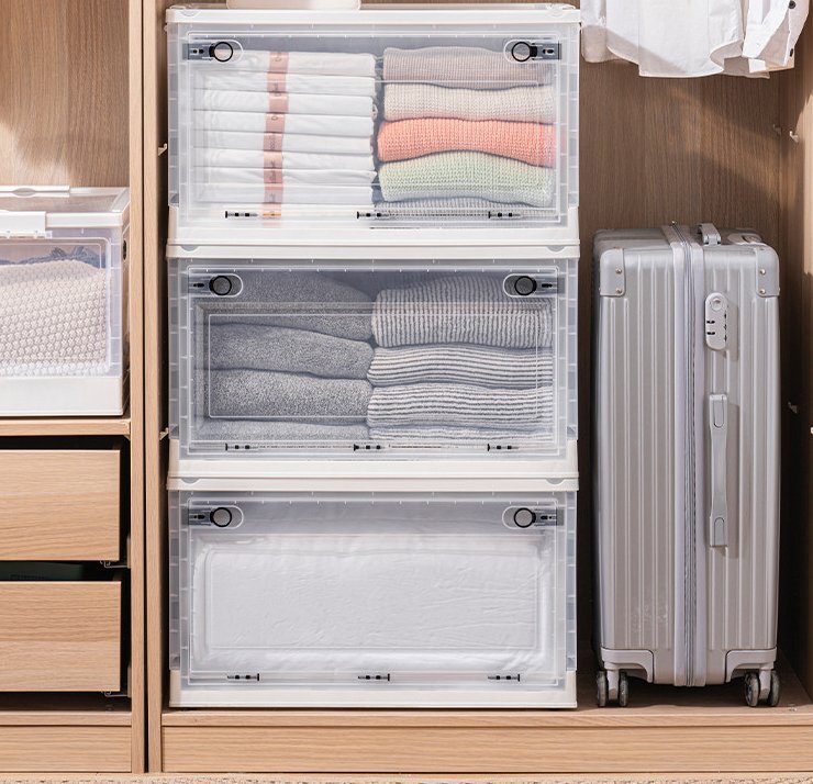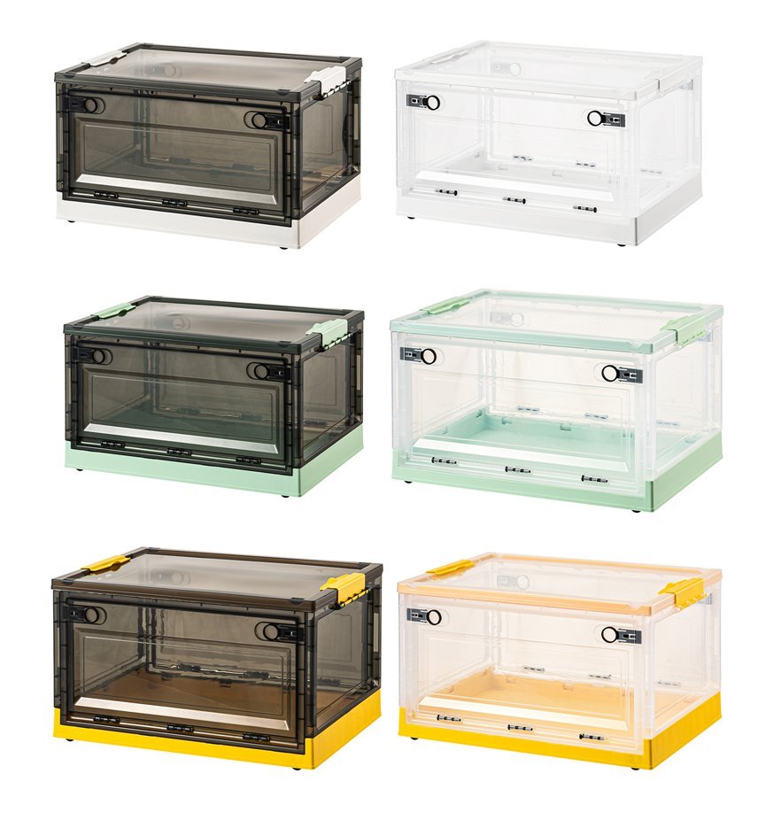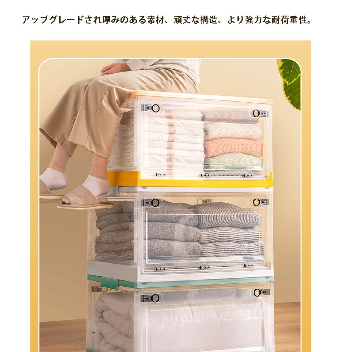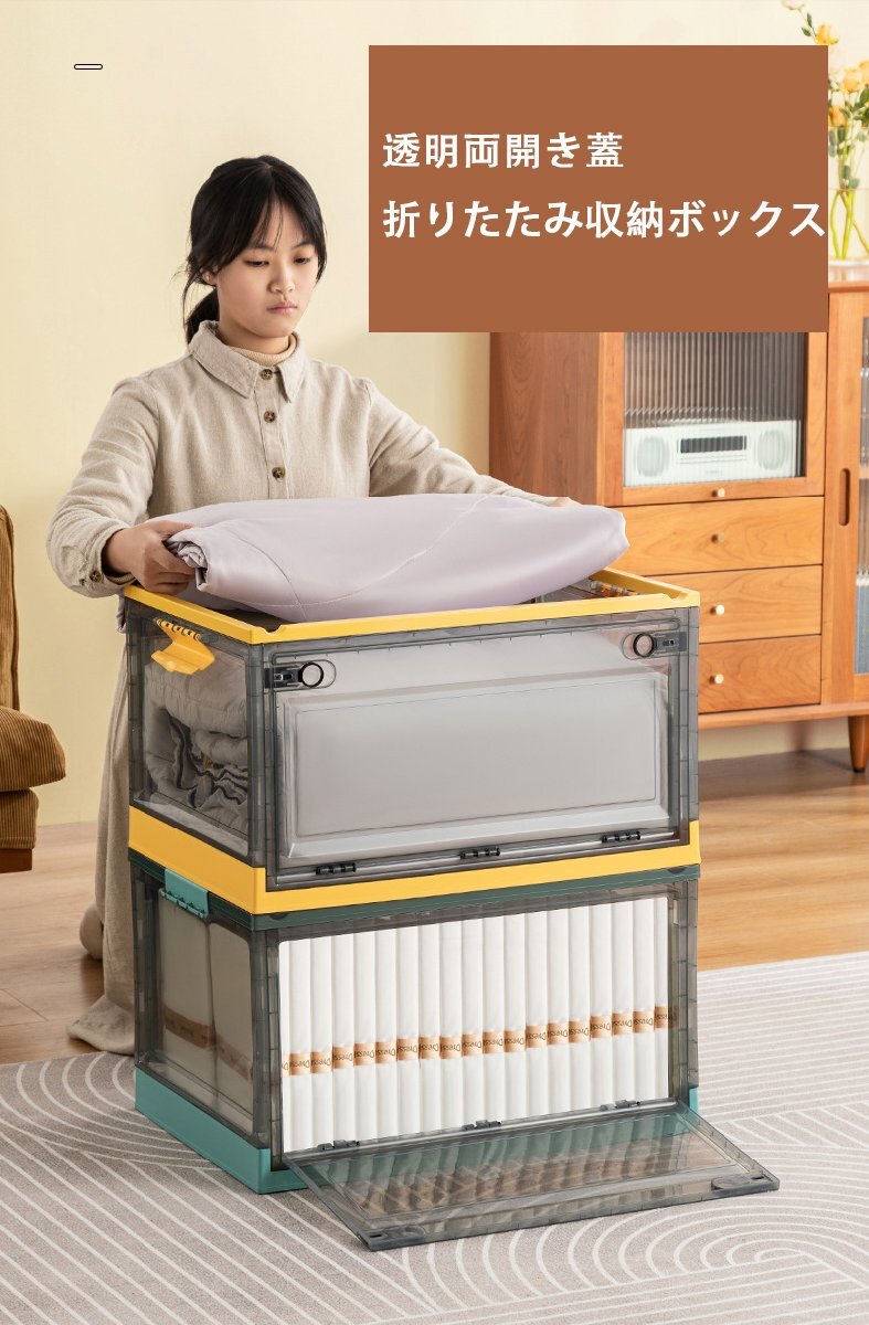 コンテナボックス 折りたたみ 透明 薄型 収納ケース 卓上収納ケース ふた付き 安定 収納ボックス 39*29*24cm 466