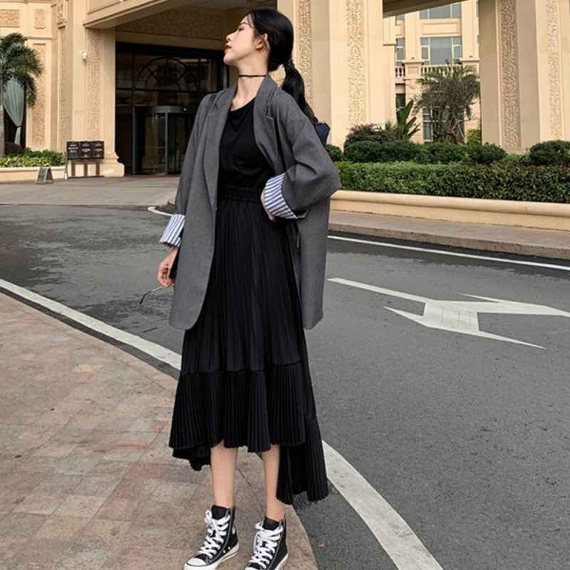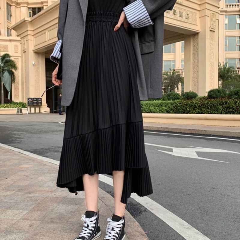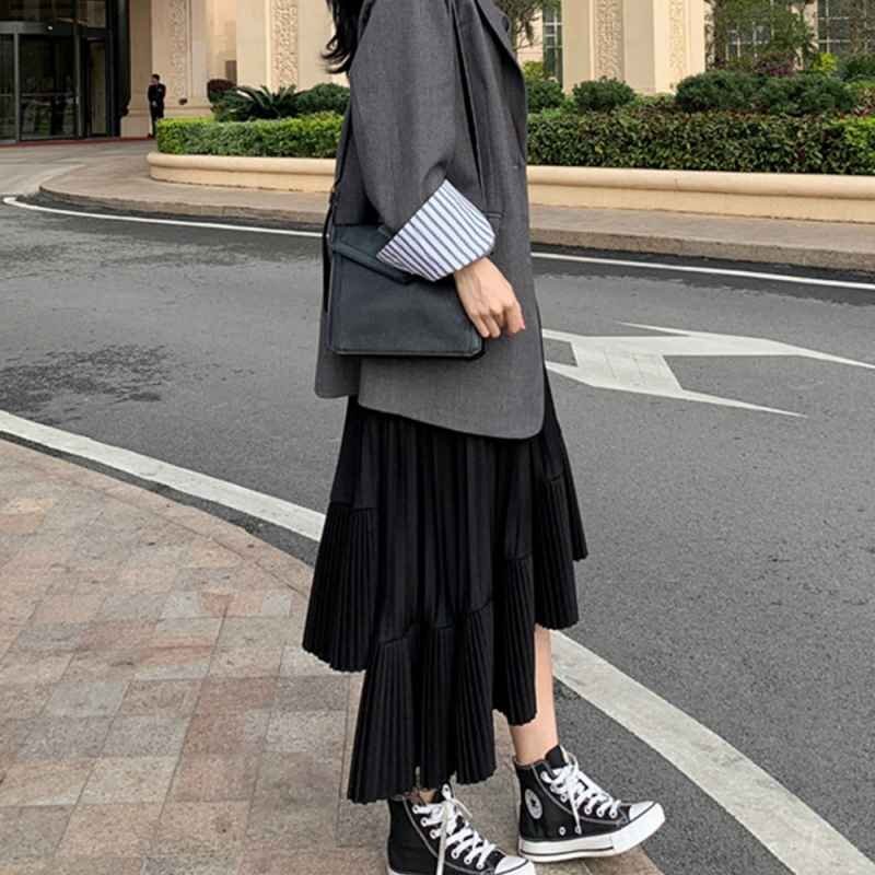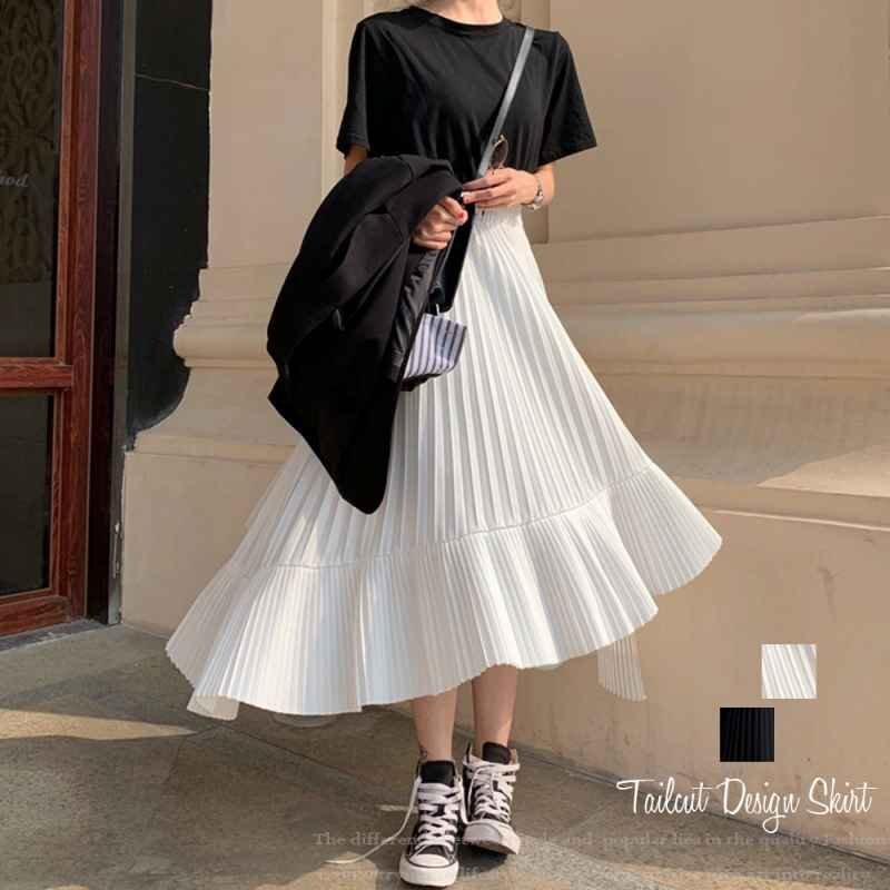 プリーツの切り替えデザインでふんわり感と落ち感の絶妙バランスのロングスカート