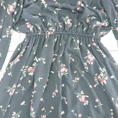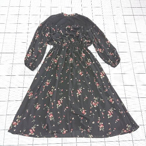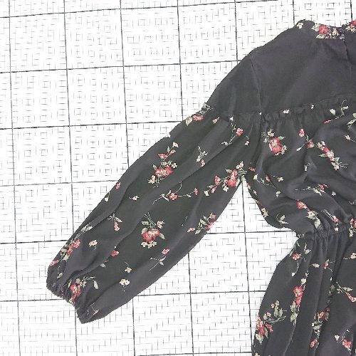◇ ⊂ INGNI イング 花柄 チュール 切替 長袖 膝下丈 ワンピース サイズM ブラック系 マルチ レディース E
