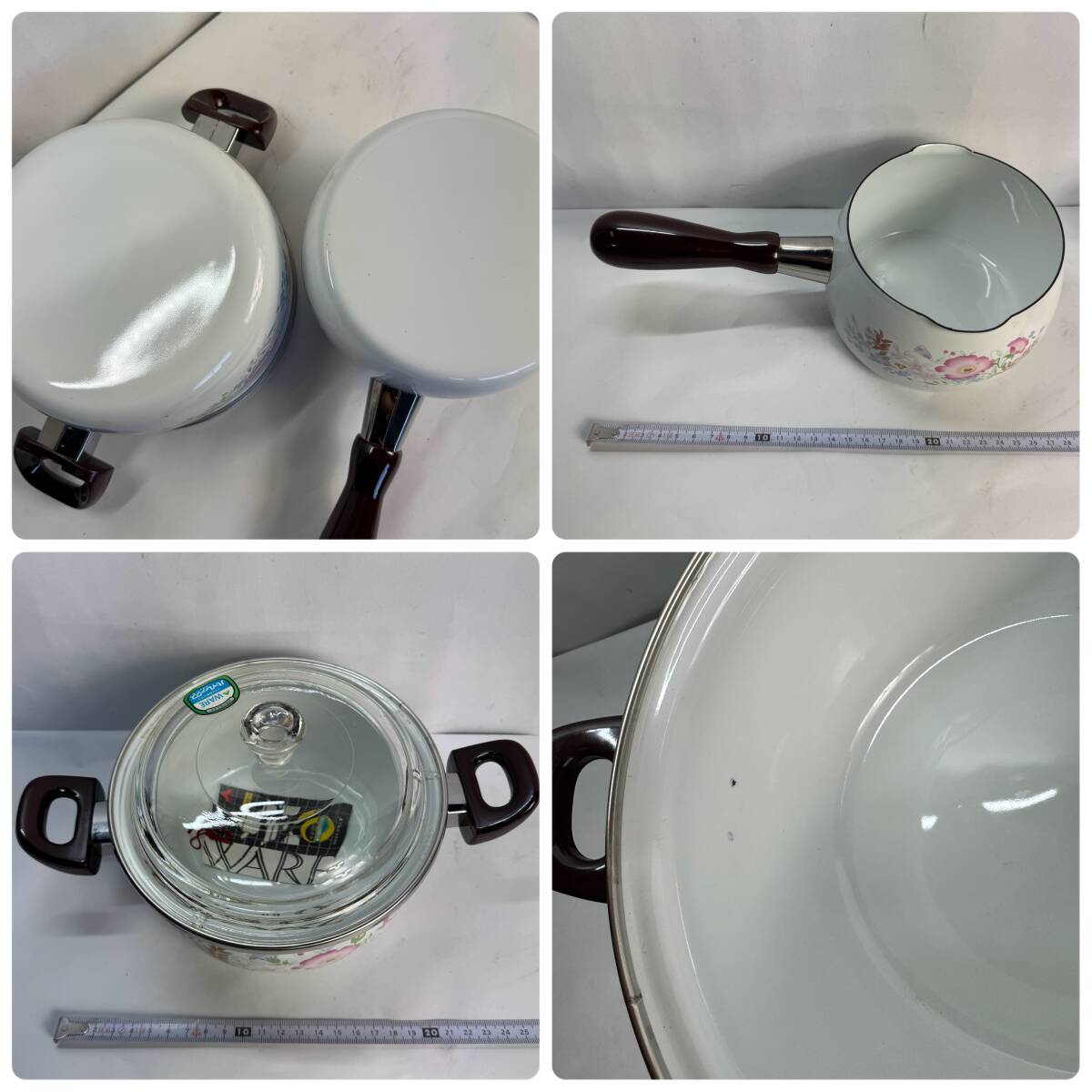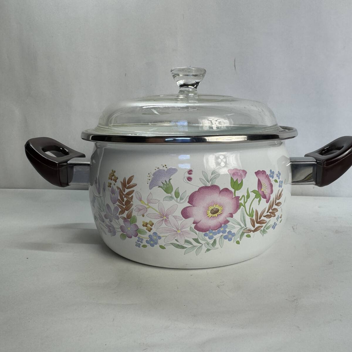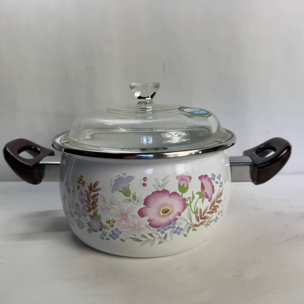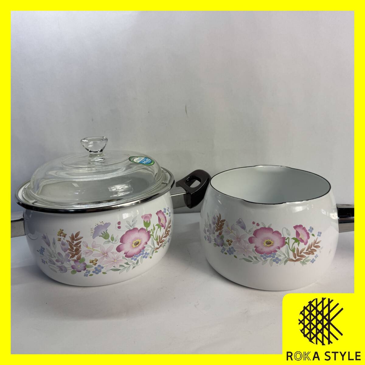 YAMAHIRO ホーロー鍋 2点セット 14cm ミルクパン 16cm 鍋 ガラス蓋 花柄 ヤマヒロ 調理器具 キッチン 新品 傷あり 長期保管品 C3 R71203