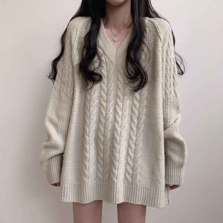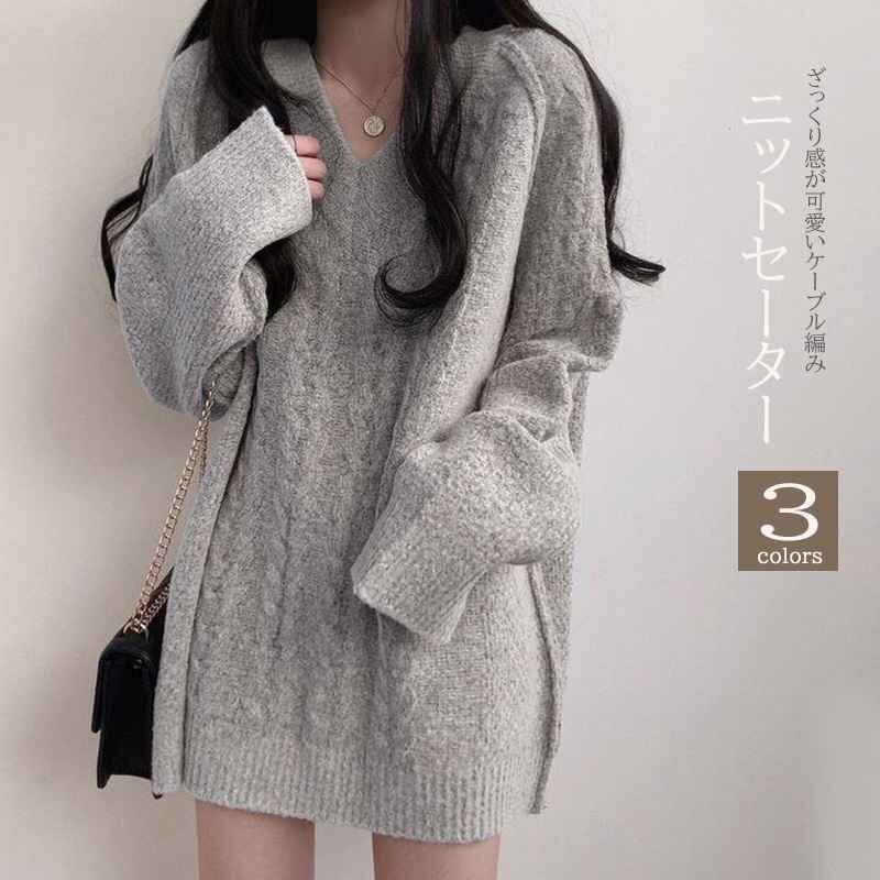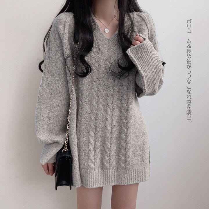 ・ざっくり感が可愛いケーブル編みニットセーター。フェミニンな女性らしい雰囲気を引き出してくれる立体感のあるケーブル編みです。