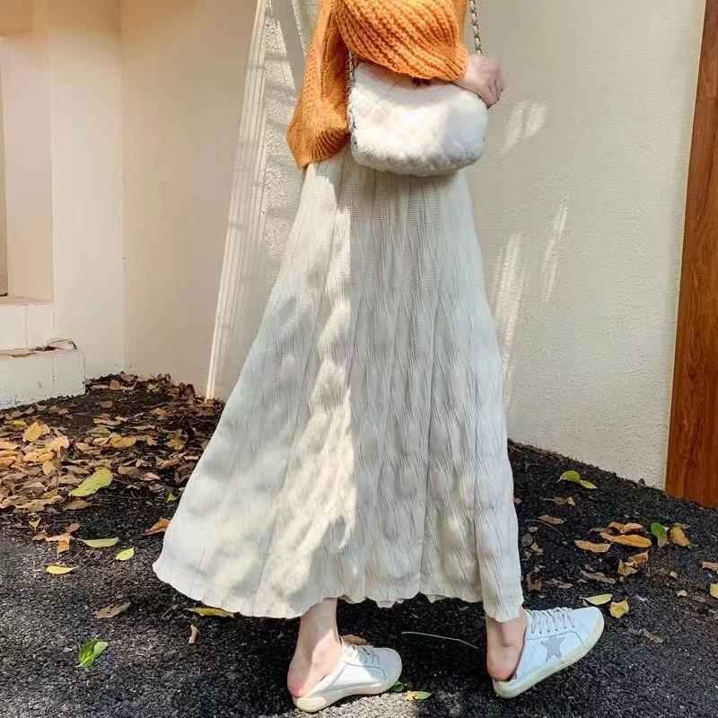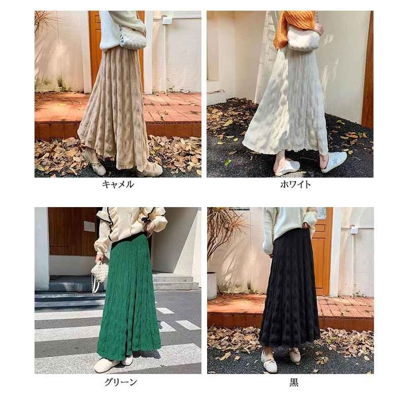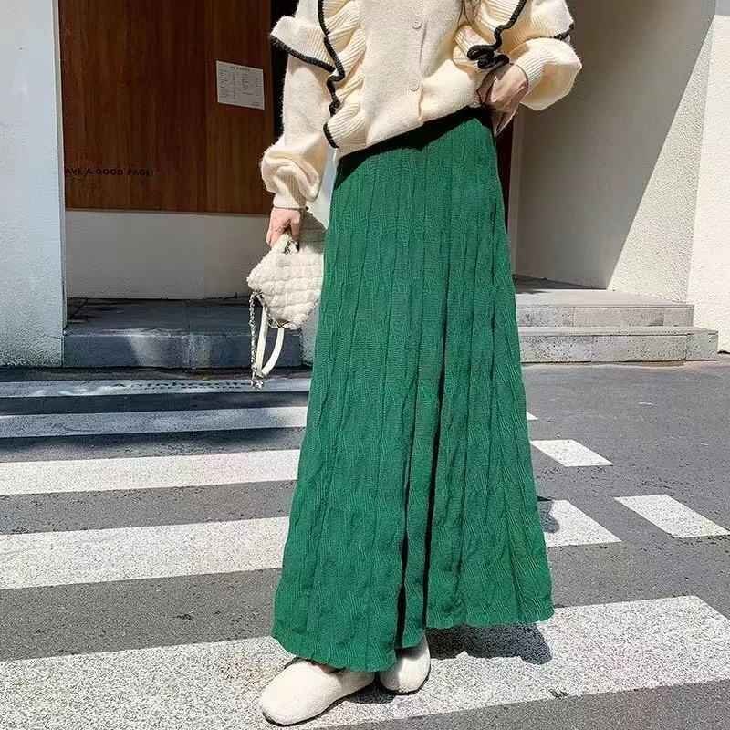 ・程よくボリューム感のあるマキシ丈ニットフレアスカート。動くたびエレガントに揺れるプリーツデザインが魅力的。