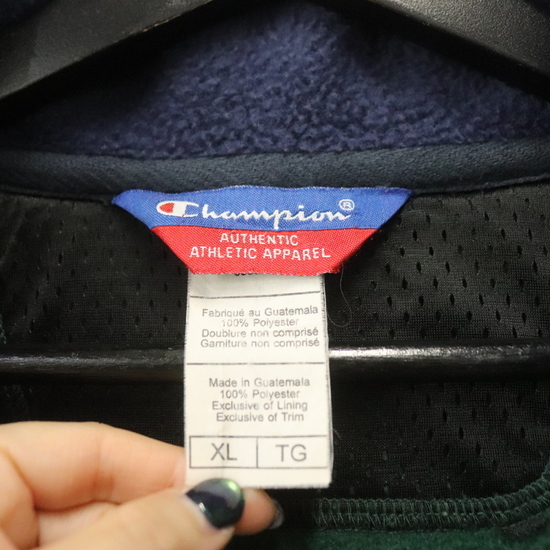 e979 2000年代製 champion チャンピオン フリースジャケット■00s 表記XLサイズ グリーン ハーフジップ アメカジ ストリート 古着 激安 90s