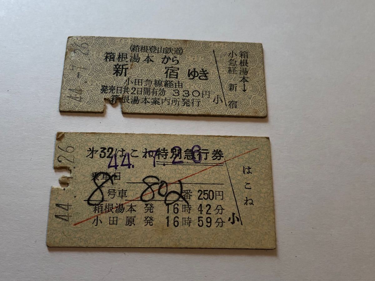 ◆昭和44年/硬券切符【第32はこね特急券箱根湯本発】小田急電鉄/【箱根湯本発新宿行き箱根登山鉄道乗車券:小田急経由】