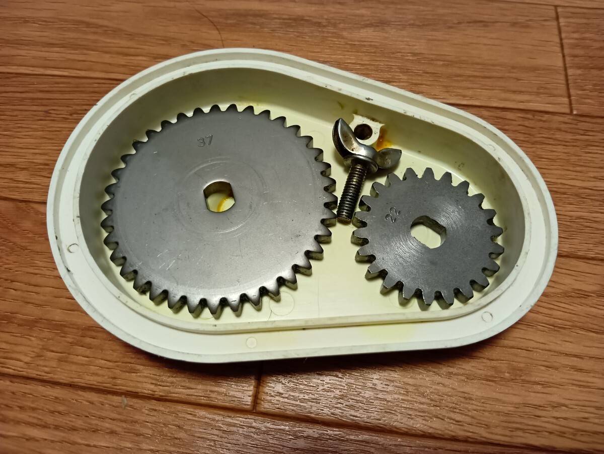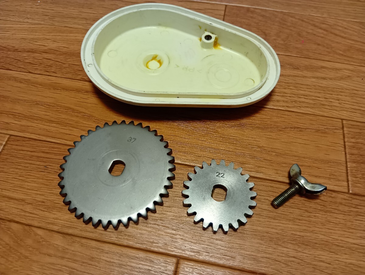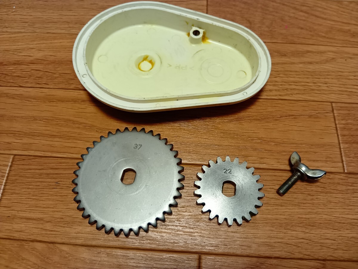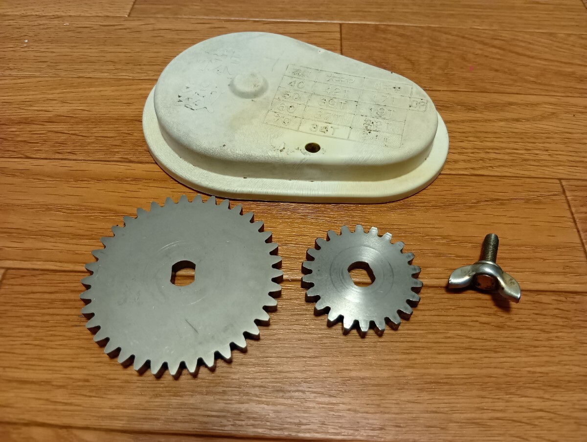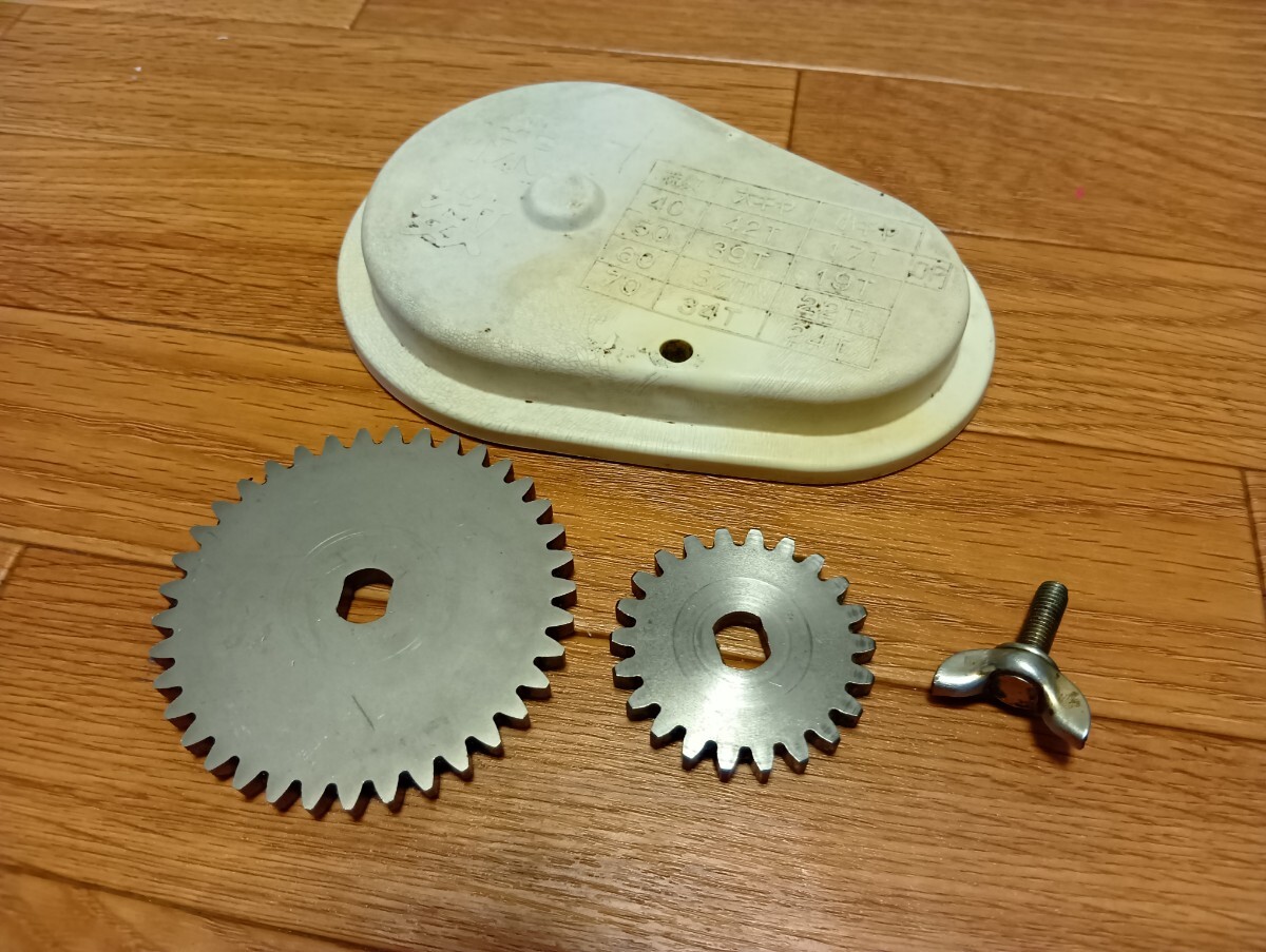 ヤンマーの田植え機 pe-1 から取り外した 金属製ギヤパーツ大小、2点セット の出品です。