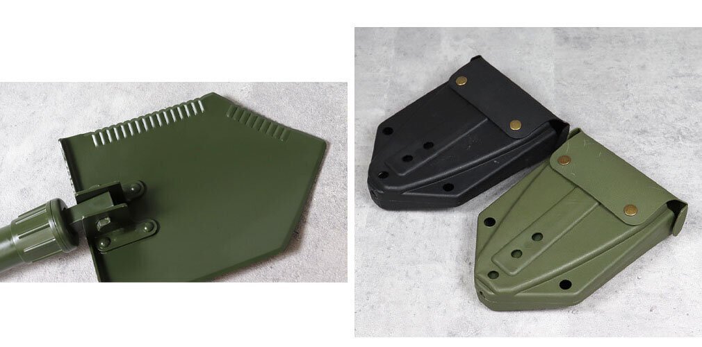 アメリカ軍の携帯用3つ折りシャベルをサンプリングしたリプロダクトアイテムです。 ケース付です。刃と柄の付け根部分のパーツを回して固定させて収納します。 軽量で折り畳み時は手の平よりも一回り程の大きさになります。 ※ケースに保管時に付いた傷が付いている物がありますが、中古品ではございません。 サイズ:折り曲げた状態(ケース)約25×17cm / 伸ばした状態全長60cm×15.5cm 沖縄離島を除く全国500円でお送りいたします、落札価格にプラスでお願いいたします。キャンプ用品