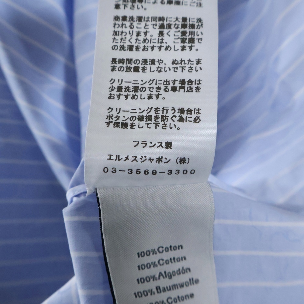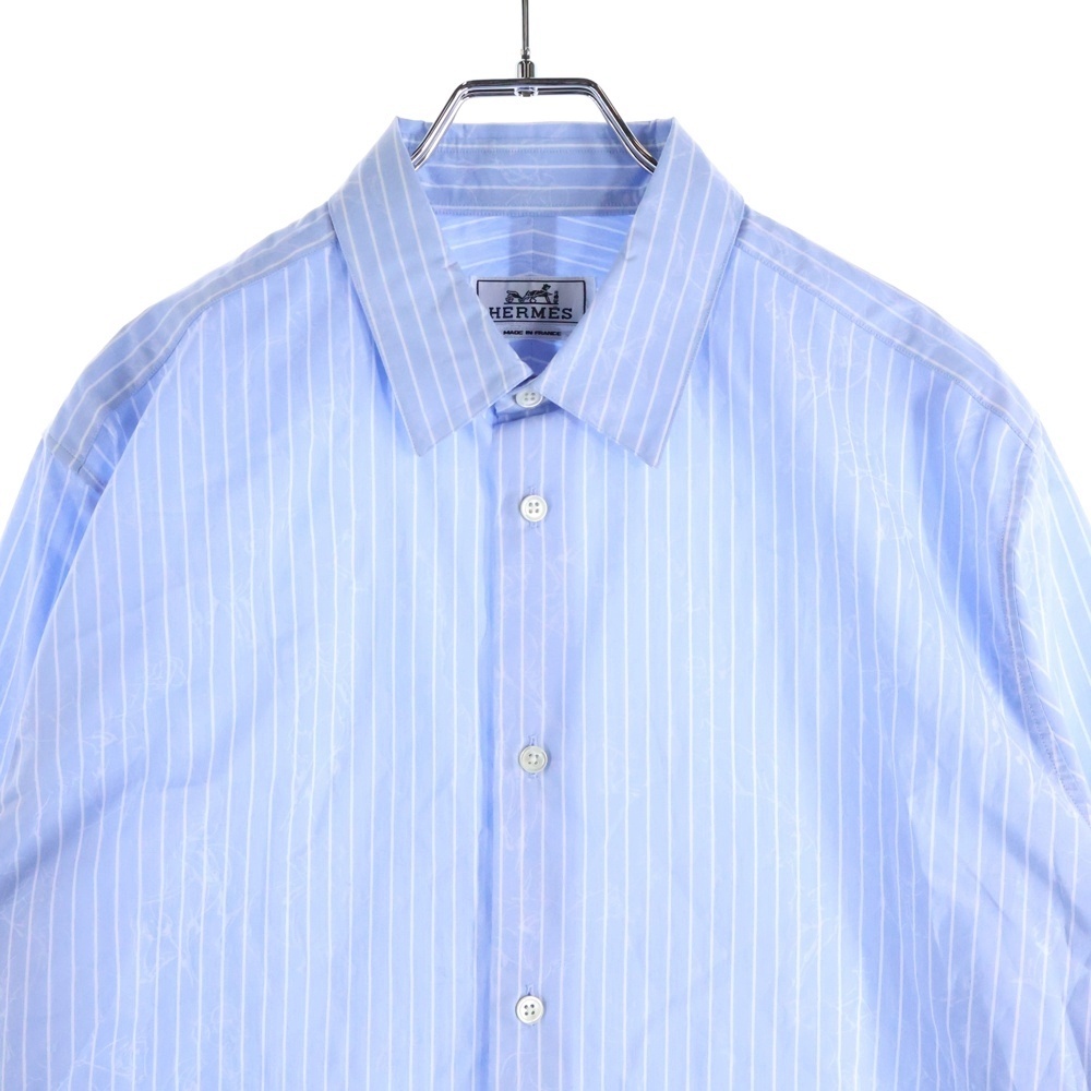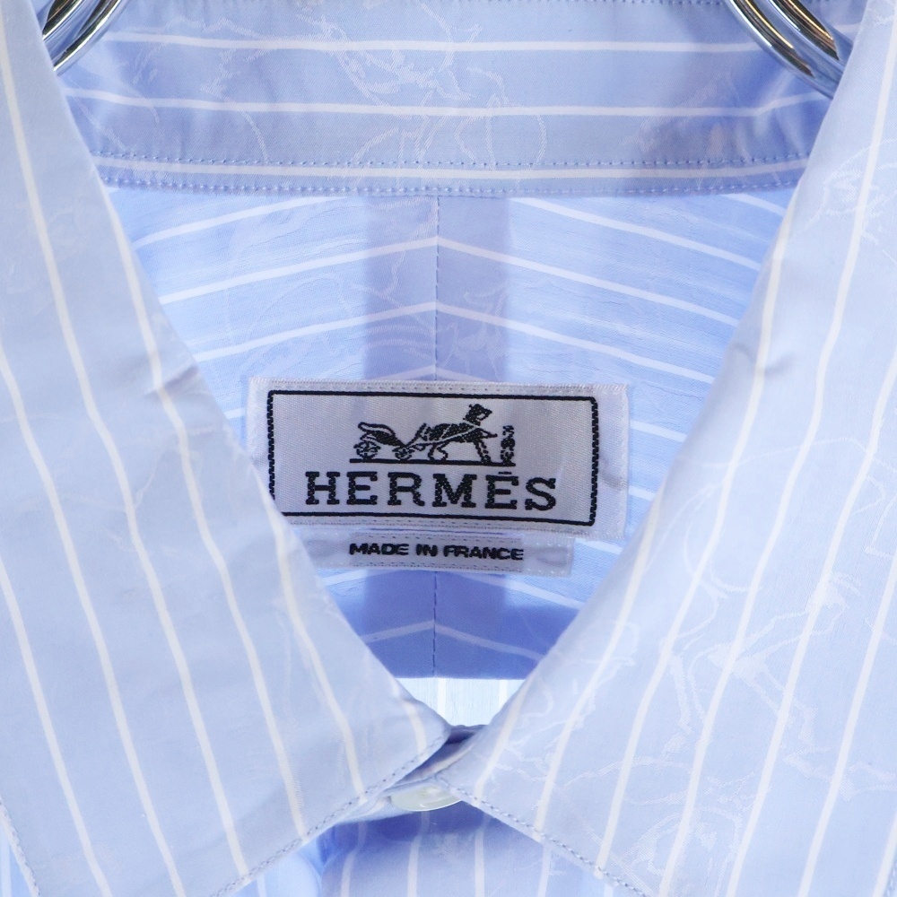 HERMES エルメス セリエ カフスボタン ストライプ 馬 総柄プリント 長袖シャツ ライトブルー