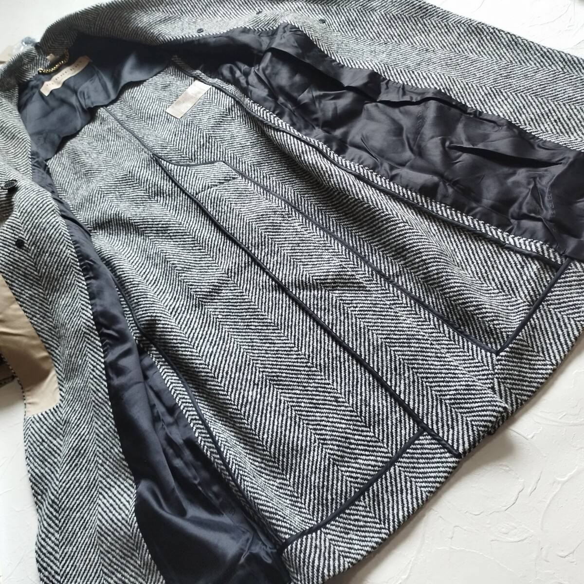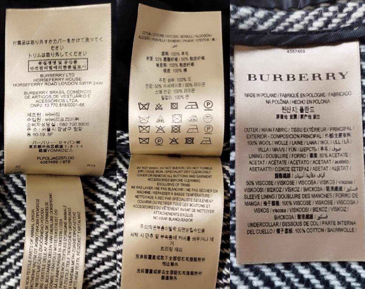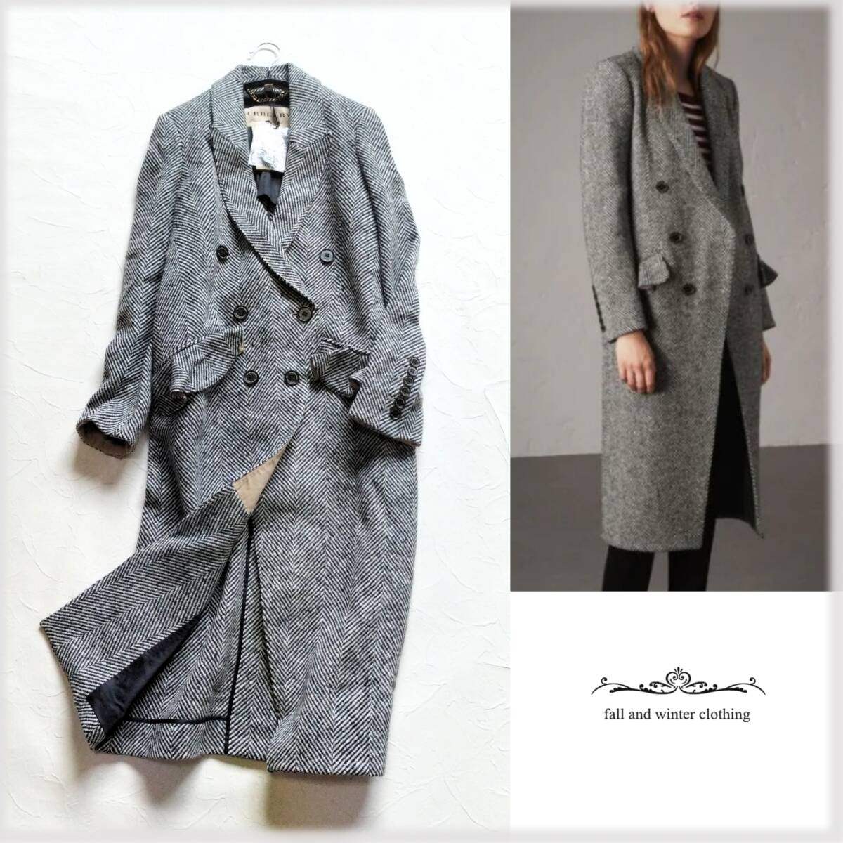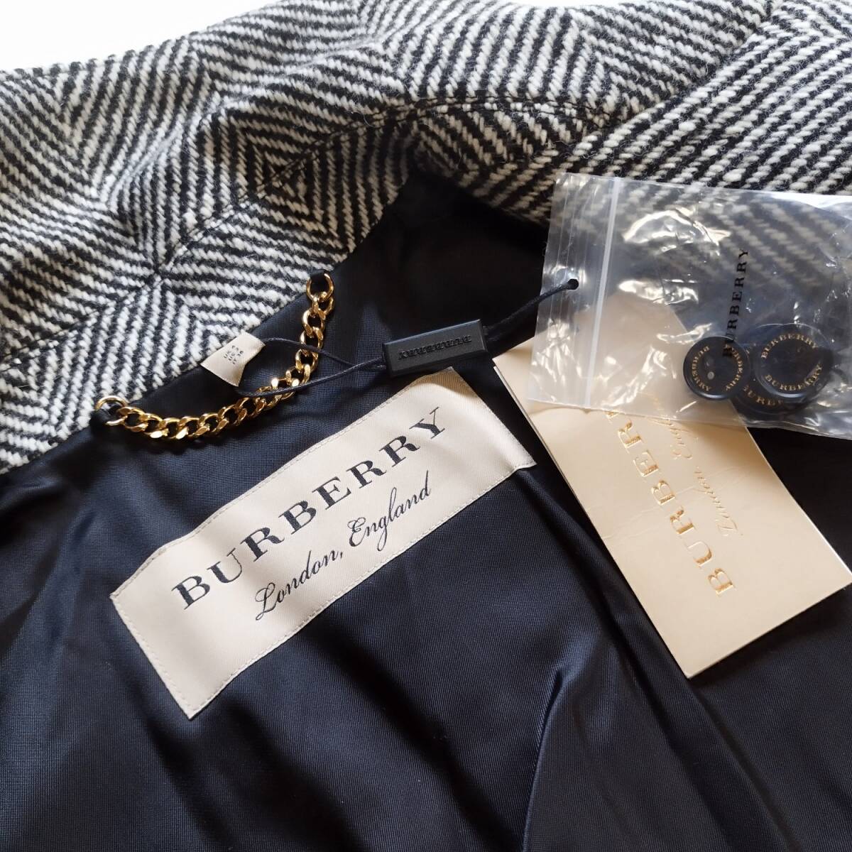 BURBERRY LONDON ENGLAND ( 2017年 ポーランド製 ) 定価:180,000円+TAX シーズンムードあふれるとても素敵なチェスターコートです♪(* ´ ∇ ` * ) ファブリックは クラシカルな印象のヘリンボーンを使用。 暖かくやわらかでシワも付きにくく、格調の高さと機能性を持ち合わせており、 ウール100%の上質なお素材で、高級感がございます。 華やかなダブルブレストに ブラック×金ロゴのボタンやフリルフラップなど、 トラディショナルな気品の中にも 大人の女性の可愛らしさが覗く エレガントなデザインになっています。 すっきりと細身のシルエットですが、バックにロングスリットが入っているので、 足さばきも良いです。 背中からフロントにかけての裏地にはロゴが織り込まれていて、 シックな中にさりげないブランド主張があるのもお上品…☆ *^^* ビジネスからカジュアルまで対応でき、スタイリングの幅も広いと思います♪ 秋冬のワードローブにぜひどうぞ…☆ ◇ コンディション 紙タグ付き、未使用の美品です。 ※ 紙タグはシワなどのイタミが多少ございます。 ※ 個人保管品ですので、ご理解ある方のみお願い致します。 ◇ カラー ・・・ グレー系(ブラック&キナリのヘリンボーン) ※変色のように見える箇所は光の加減です。 ◇ 素 材 ・・・ 画像の品質表示ラベルでご確認下さい。 ◇ 裏 地 ・・・ 背抜き ◇ 仕 様 ・・・ 2ポケット バックスリットあり。 ◇ 公式サイズ ・・・ UK:4 IT:36 日本サイズでXS~S位 ◇ 平置き実寸はおよそ下記の通りです。(センチ単位) 肩幅:37 身幅:44 弱 着丈:111 袖丈:61 ☆ コーデに使用した他アイテム・アクセサリー類は付属しません…☆ *^^* ☆ 個人保管品ですので小さな見落としの際にはご容赦下さい。 「そんなの、全然いいさ♪」というおおらかな方のみ、ご入札をお願い致します…☆ ☆ お洋服の撮影につきましては床に直接置かずに壁紙を敷いて撮影しております♪ 。。。。。。。。。。。。。。。。。。。。。。。。。。。。。。。。。。。。。。。。。。。。。。。。。。。。。。 ★ その他、洋服・クツ・雑貨 など よろず出品中。 ほとんどのお品は、同梱可能です♪ どうぞお越しくださいませ…☆