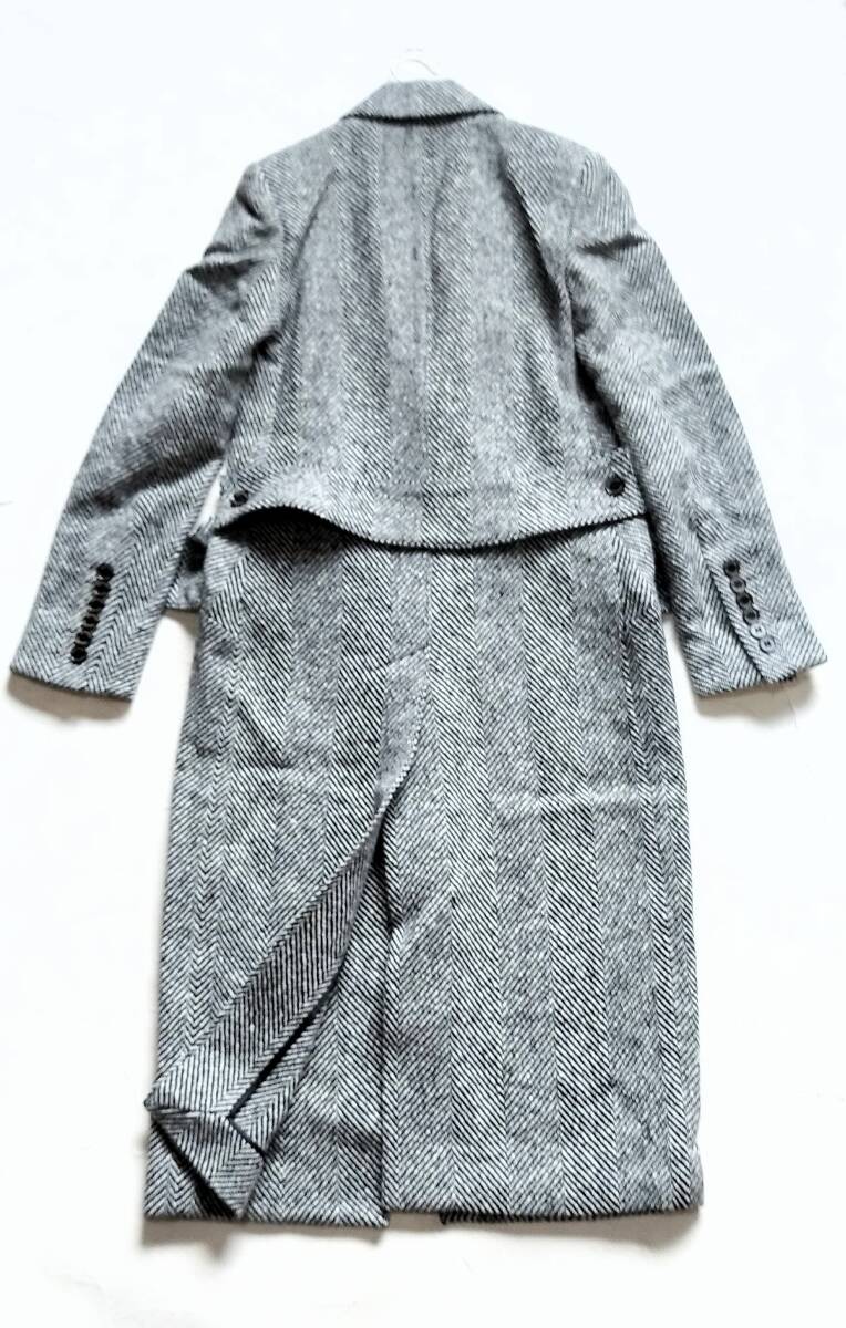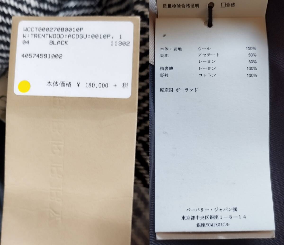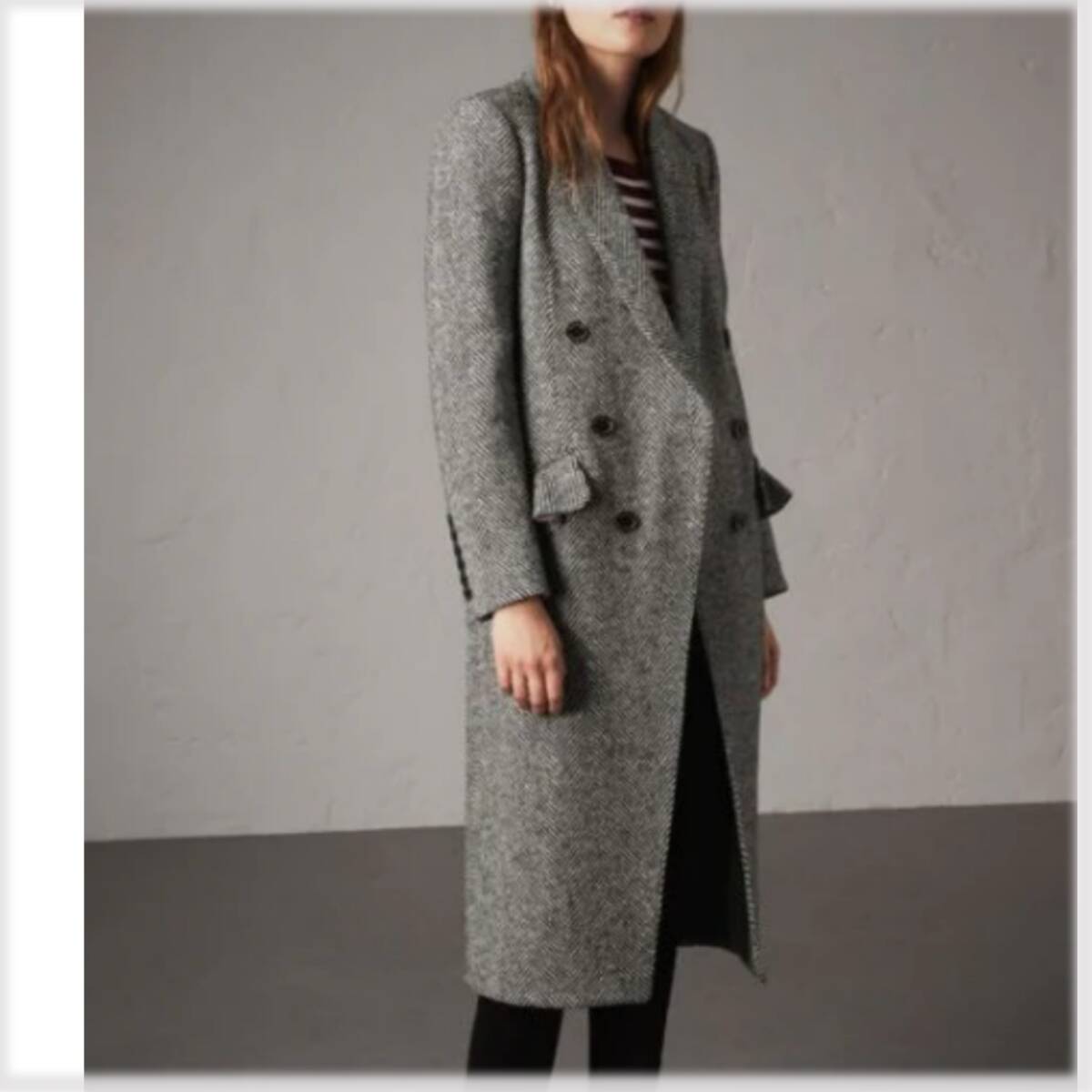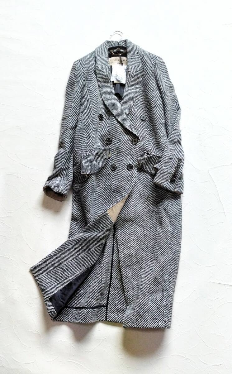 BURBERRY LONDON ENGLAND ( 2017年 ポーランド製 ) 定価:180,000円+TAX シーズンムードあふれるとても素敵なチェスターコートです♪(* ´ ∇ ` * ) ファブリックは クラシカルな印象のヘリンボーンを使用。 暖かくやわらかでシワも付きにくく、格調の高さと機能性を持ち合わせており、 ウール100%の上質なお素材で、高級感がございます。 華やかなダブルブレストに ブラック×金ロゴのボタンやフリルフラップなど、 トラディショナルな気品の中にも 大人の女性の可愛らしさが覗く エレガントなデザインになっています。 すっきりと細身のシルエットですが、バックにロングスリットが入っているので、 足さばきも良いです。 背中からフロントにかけての裏地にはロゴが織り込まれていて、 シックな中にさりげないブランド主張があるのもお上品…☆ *^^* ビジネスからカジュアルまで対応でき、スタイリングの幅も広いと思います♪ 秋冬のワードローブにぜひどうぞ…☆ ◇ コンディション 紙タグ付き、未使用の美品です。 ※ 紙タグはシワなどのイタミが多少ございます。 ※ 個人保管品ですので、ご理解ある方のみお願い致します。 ◇ カラー ・・・ グレー系(ブラック&キナリのヘリンボーン) ※変色のように見える箇所は光の加減です。 ◇ 素 材 ・・・ 画像の品質表示ラベルでご確認下さい。 ◇ 裏 地 ・・・ 背抜き ◇ 仕 様 ・・・ 2ポケット バックスリットあり。 ◇ 公式サイズ ・・・ UK:4 IT:36 日本サイズでXS~S位 ◇ 平置き実寸はおよそ下記の通りです。(センチ単位) 肩幅:37 身幅:44 弱 着丈:111 袖丈:61 ☆ コーデに使用した他アイテム・アクセサリー類は付属しません…☆ *^^* ☆ 個人保管品ですので小さな見落としの際にはご容赦下さい。 「そんなの、全然いいさ♪」というおおらかな方のみ、ご入札をお願い致します…☆ ☆ お洋服の撮影につきましては床に直接置かずに壁紙を敷いて撮影しております♪ 。。。。。。。。。。。。。。。。。。。。。。。。。。。。。。。。。。。。。。。。。。。。。。。。。。。。。。 ★ その他、洋服・クツ・雑貨 など よろず出品中。 ほとんどのお品は、同梱可能です♪ どうぞお越しくださいませ…☆