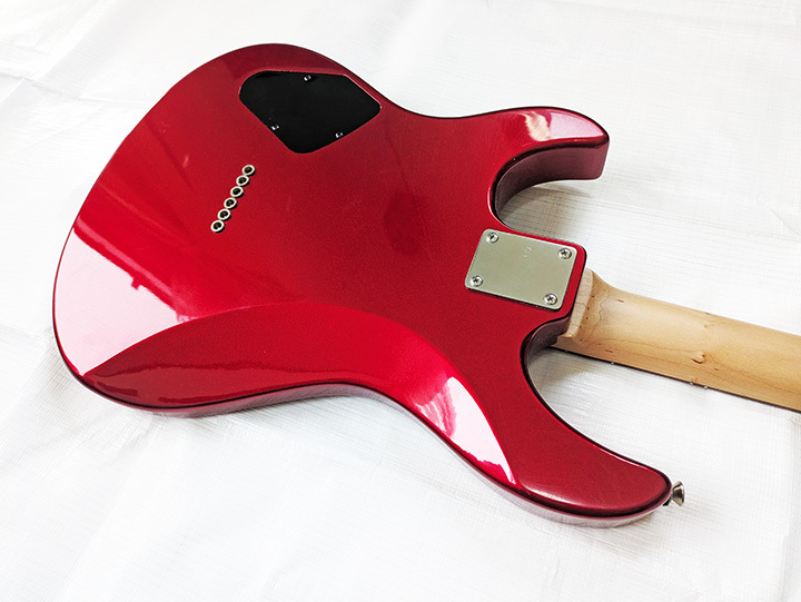 ボディ、ネック共に大きな塗装の剥がれなどがありませんが、ボディ下側の側面に米粒大の打傷があります。電装関係も問題ありません。