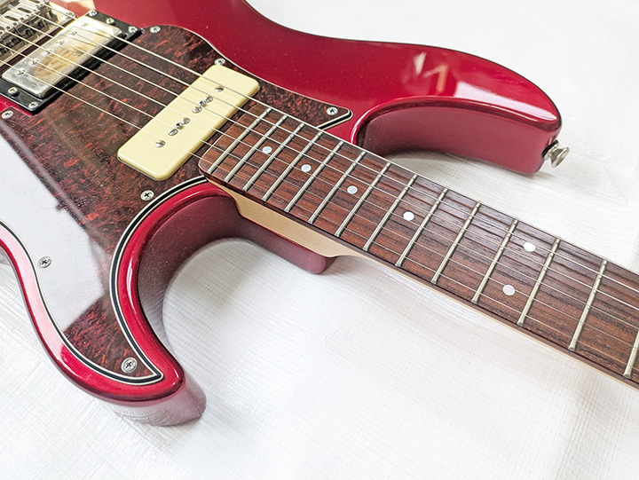 アルダーボディ、メイプルネック、ローズ指板