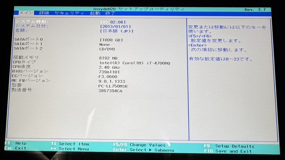 ■型番 NEC PC-LL750MSR ■CPU Intel Core i7-4700MQ(2.40GHz)