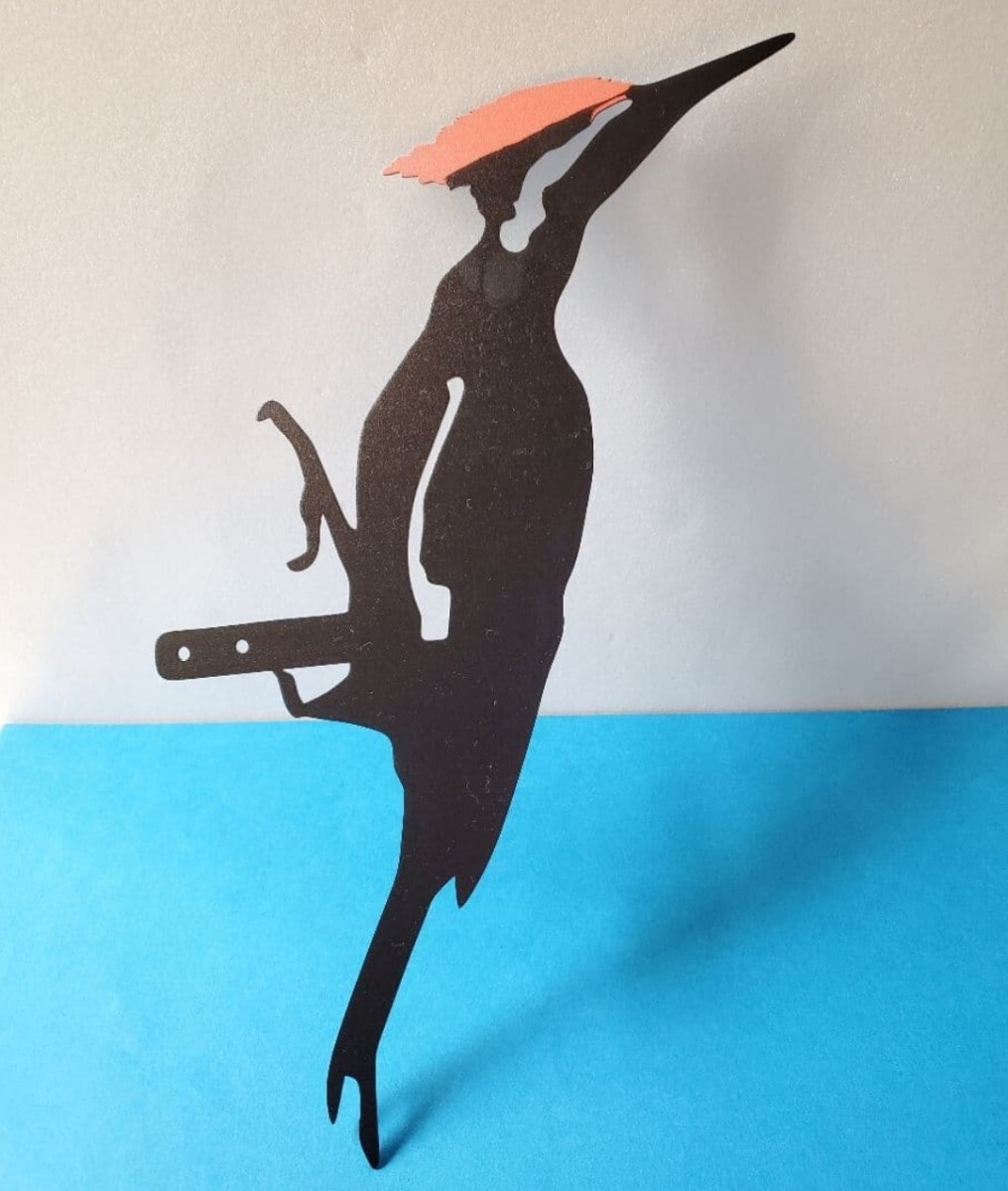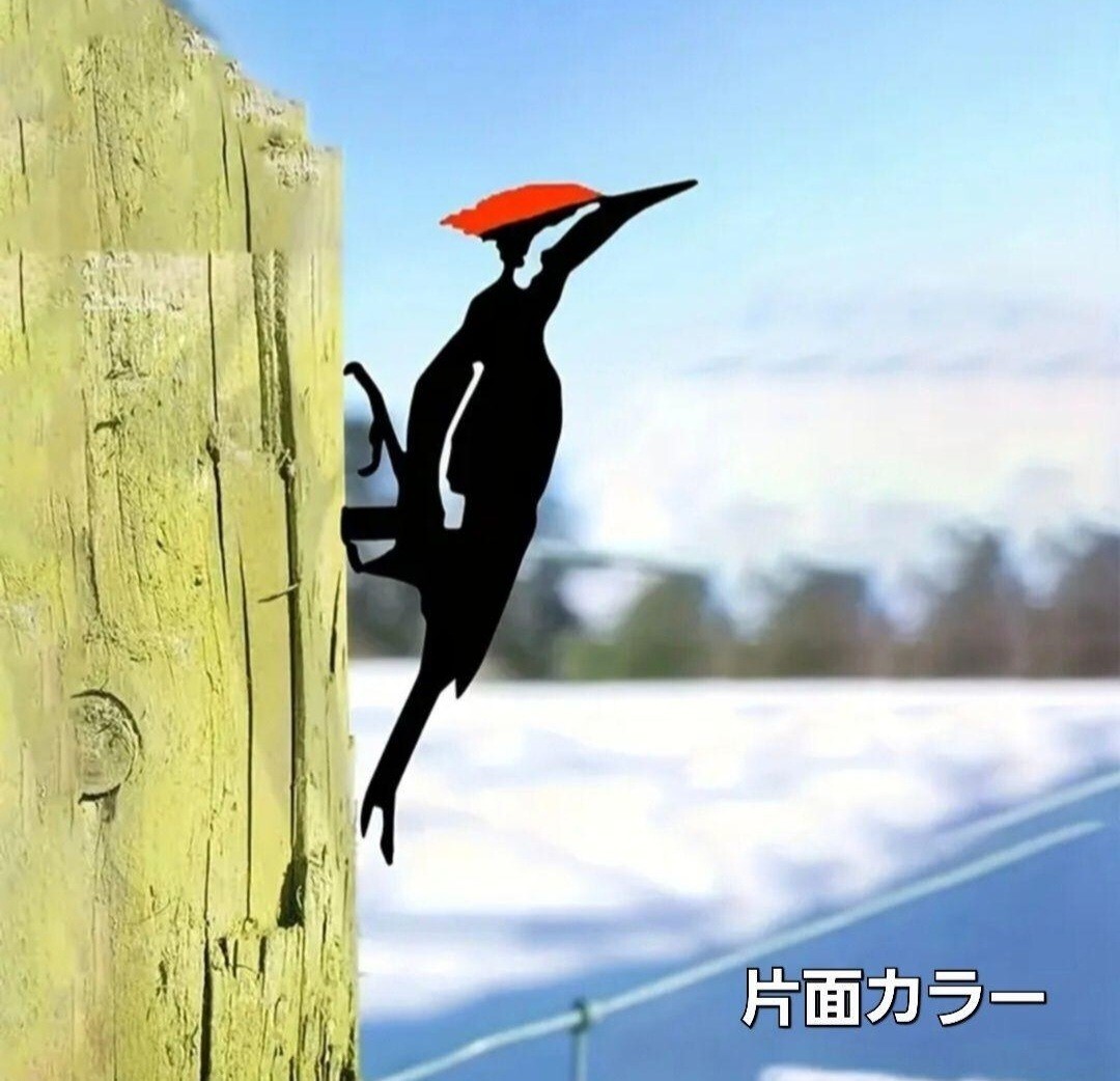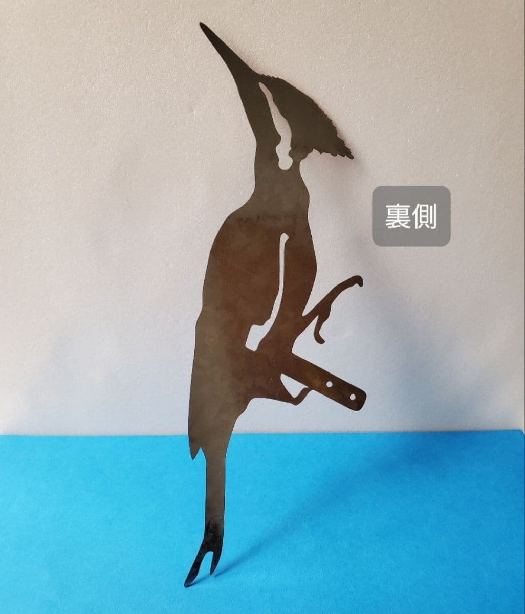 キツツキをモチーフした金属製のガーデンオブジェです。