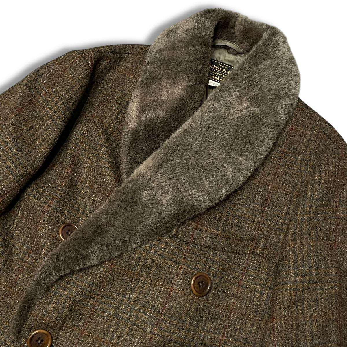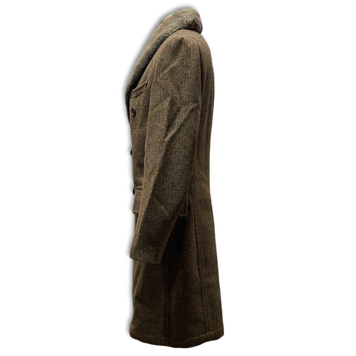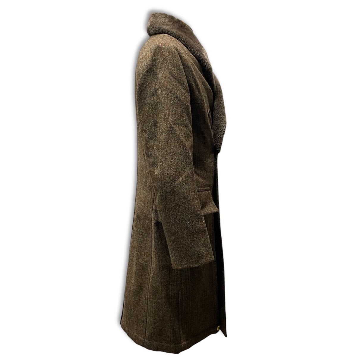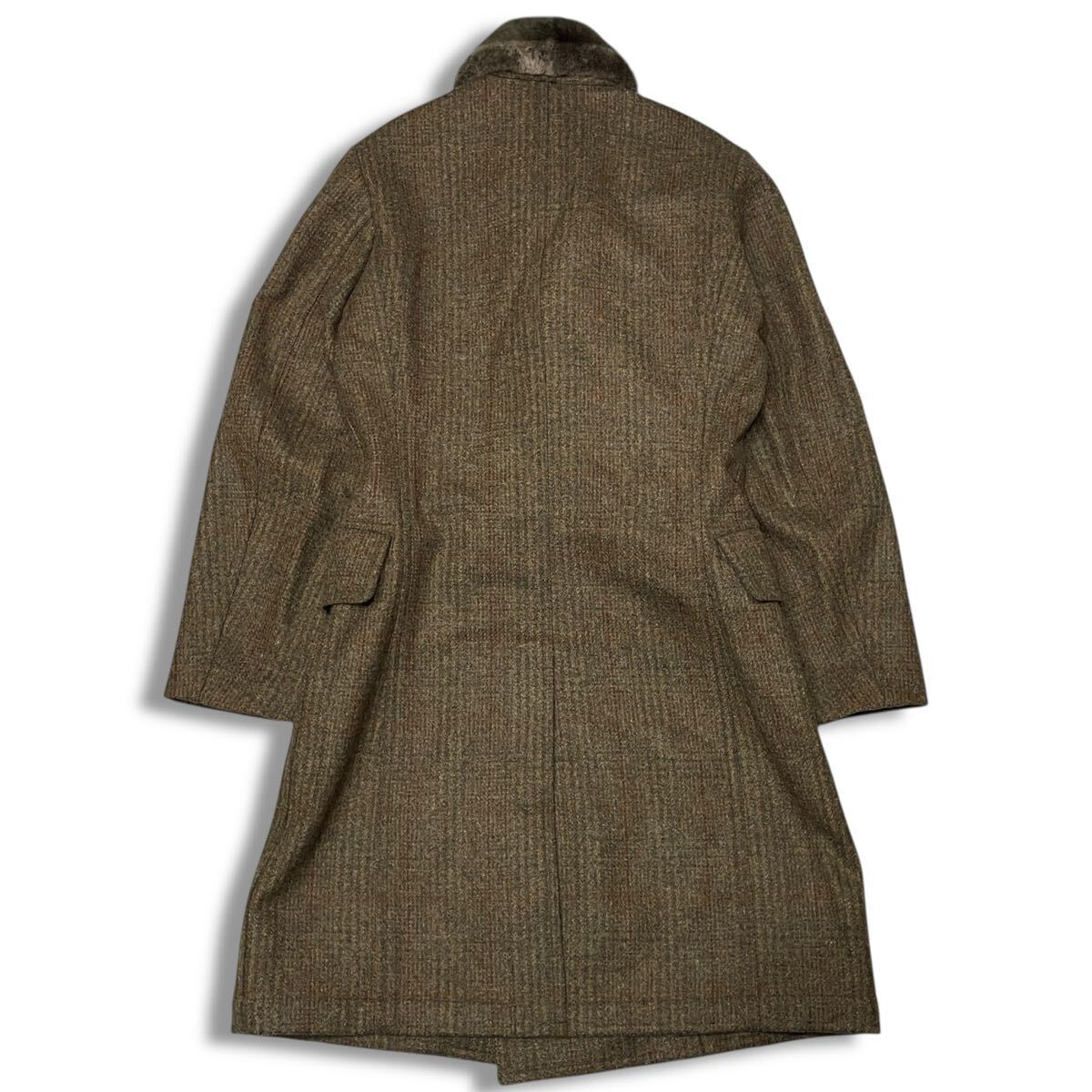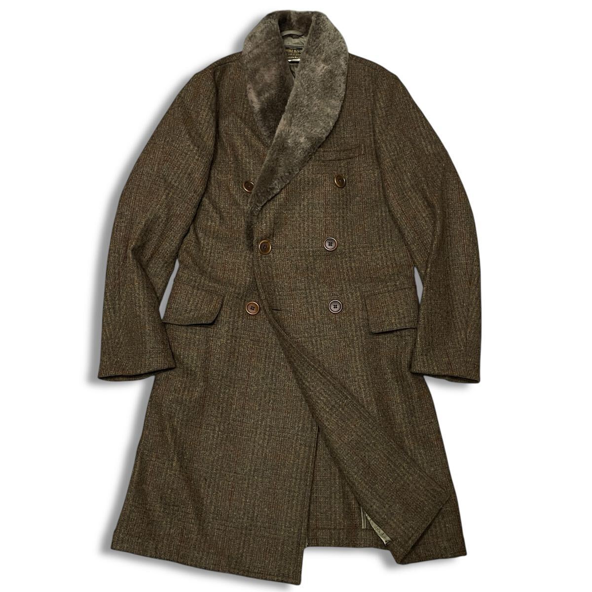 伝統ある英国のミルから調達したプラッドウールツイードを使用。ムートンのショールカラー。30年代後半から40年代前半のトップコートにインスパイアされた一着。非構築なスタイル