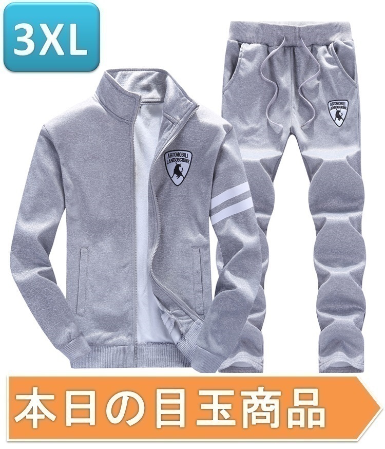 【今日の目玉】メンズセットアップ 上下セット ☆237 グレー 3XLサイズ ジャージ スウェット お兄系 部屋着 おしゃれ