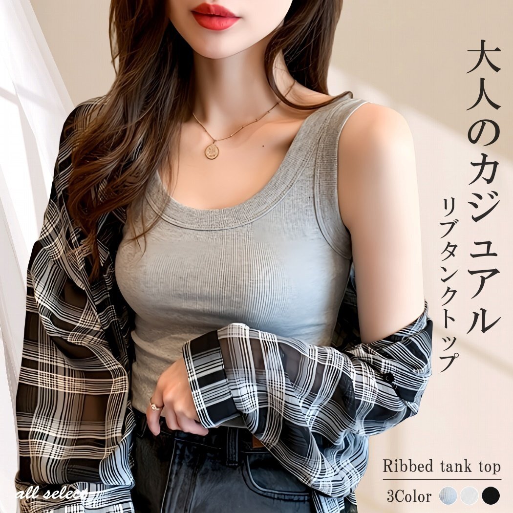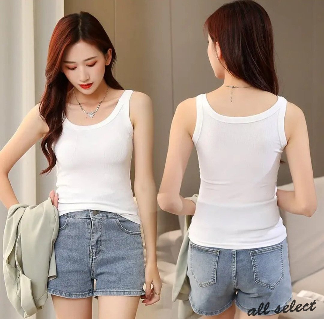 ●無地でシンプルなデザインのスリムフィットで高弾力性のタンクトップ