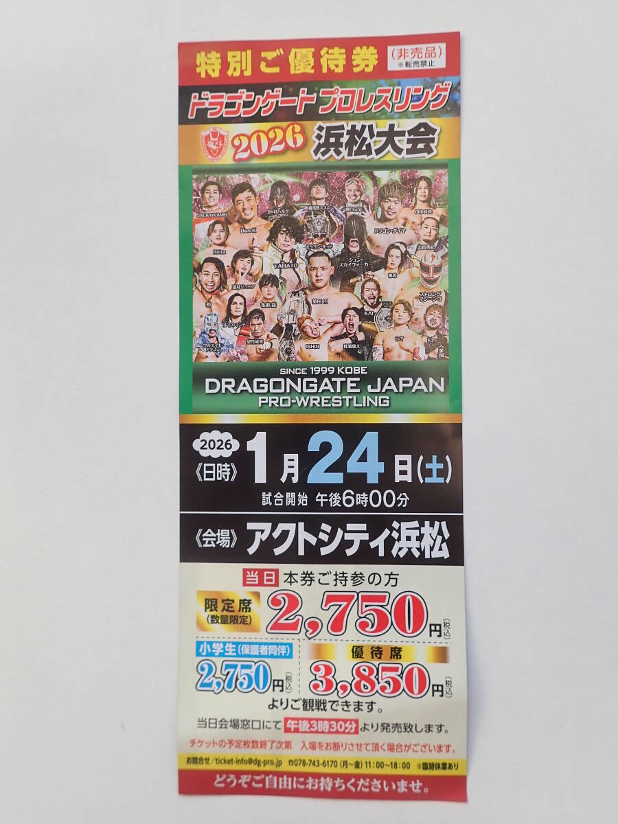 【DRAGONGATE JAPAN】ドラゴンゲートプロレスリング 2026 浜松大会 アクトシティ浜松 になります。