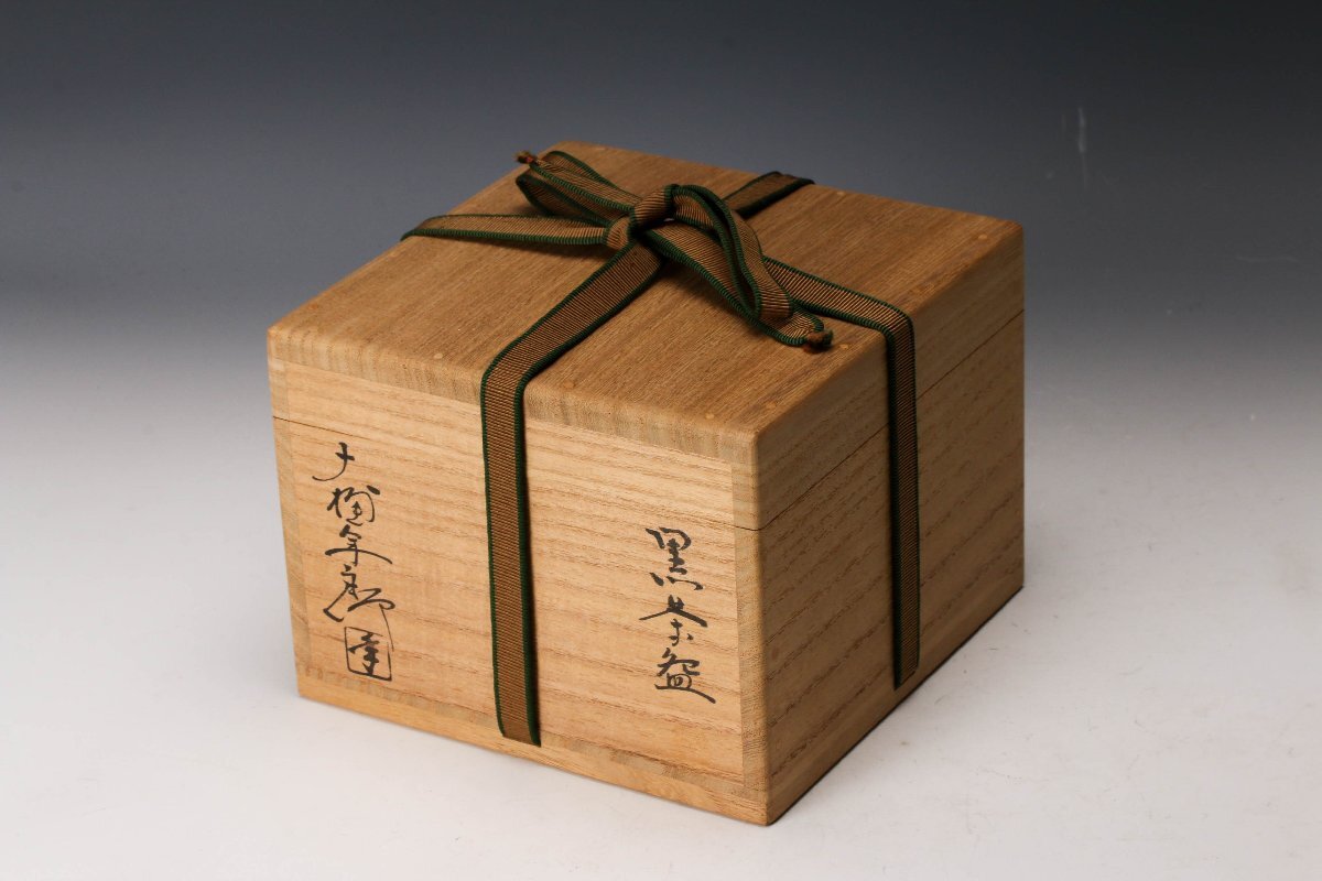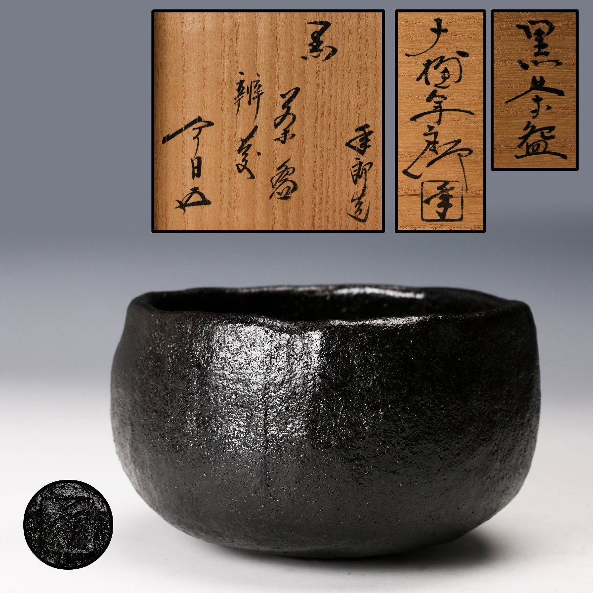 【佳香】十代 大樋長左衛門(年郎) 黒茶碗 銘『弁慶』 裏千家十五代鵬雲斎(汎叟宗室)書付箱 共布 茶道具 本物保証
