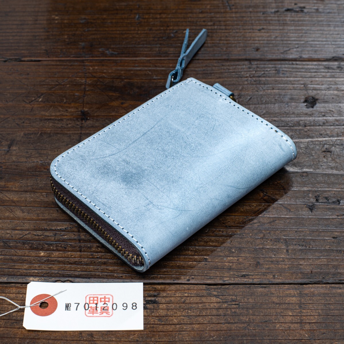 ワックスレザー【青色】牛革 ミドルウォレット L字ファスナー 二つ折り メンズ 本革 財布 新品 未使用 送料無料 1円 ブルー 田中革具