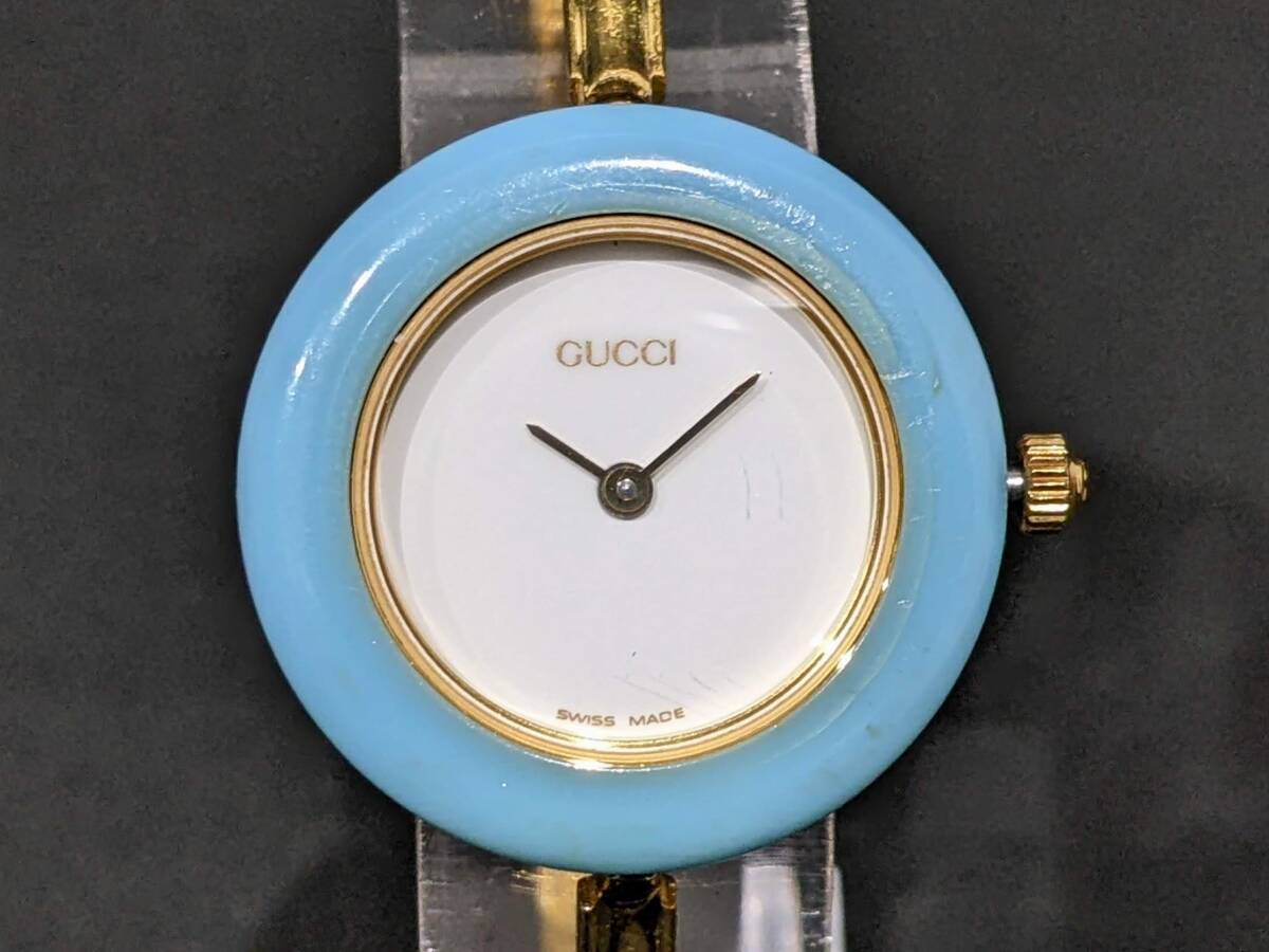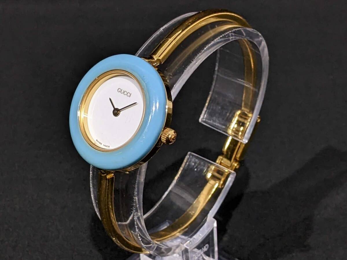 【71410】GUCCI グッチ チェンジベゼル 11/12.2 バングルウォッチ 時計 白文字盤 レディース ブランド