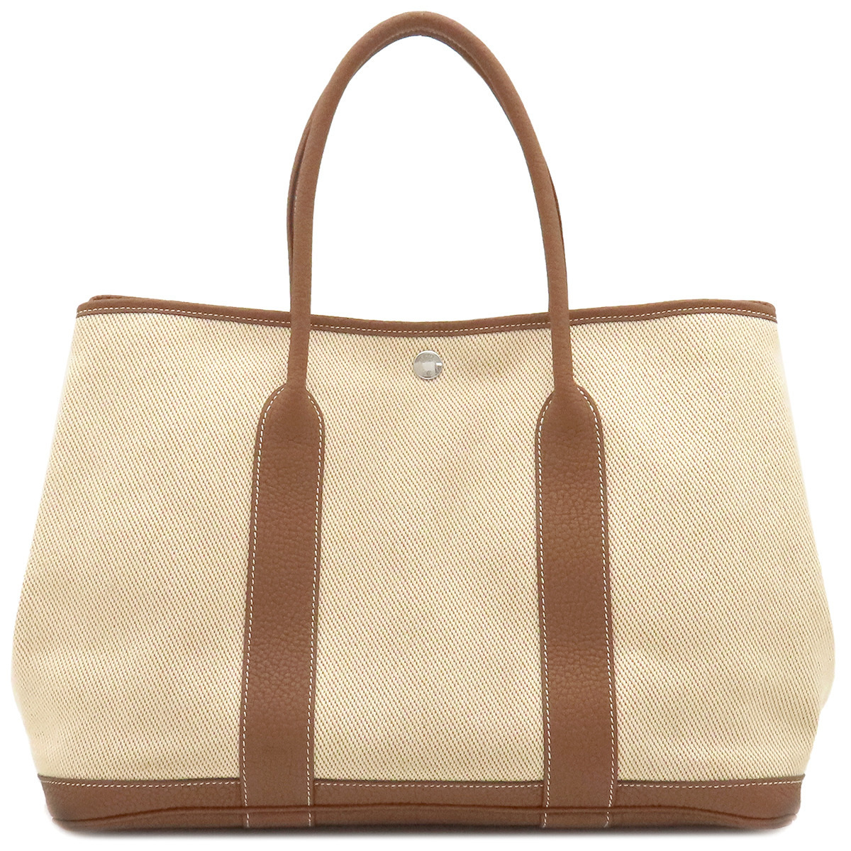 エルメス トートバッグ ガーデンパーティーPM トワルアッシュ ベージュ 茶 トワルH 中古