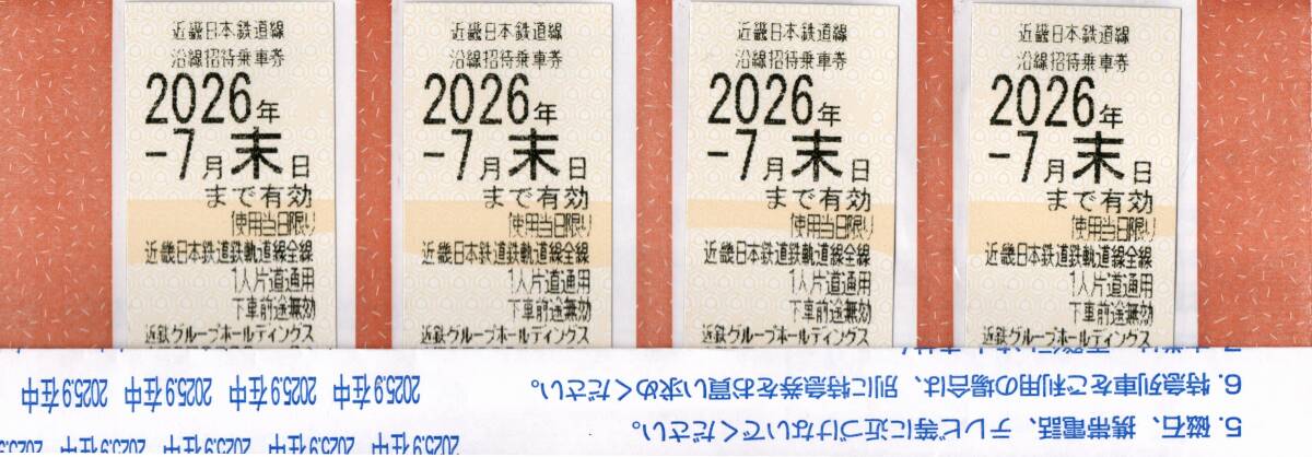 【送料無料】近鉄株主優待 乗車券4枚 有効期限2026年7月末日