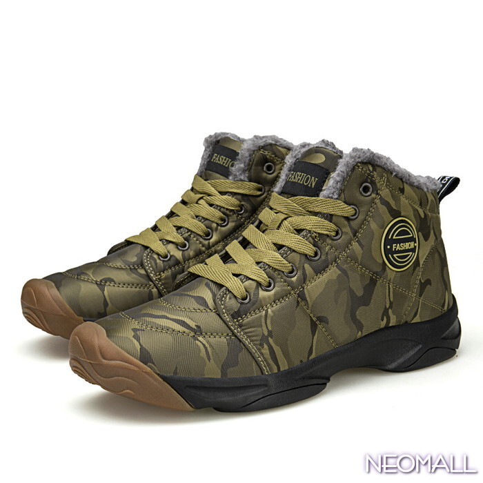 メンズ スノーシューズ 【864】 27.0cm 迷彩グリーン ムートンブーツ スニーカー ウィンターブーツ 裏起毛 防水 防寒 防滑 冬用靴 綿靴