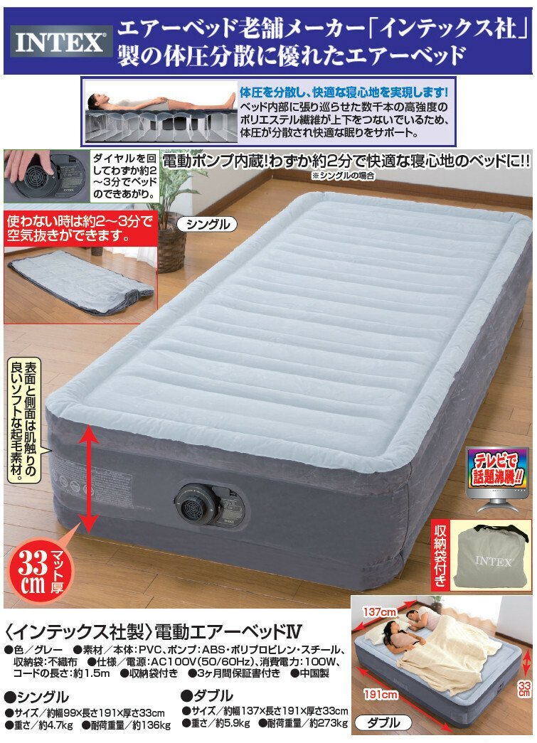 | 即決可@新品インテックス社製 電動エアーベッドIV シングル | ||||||||||||