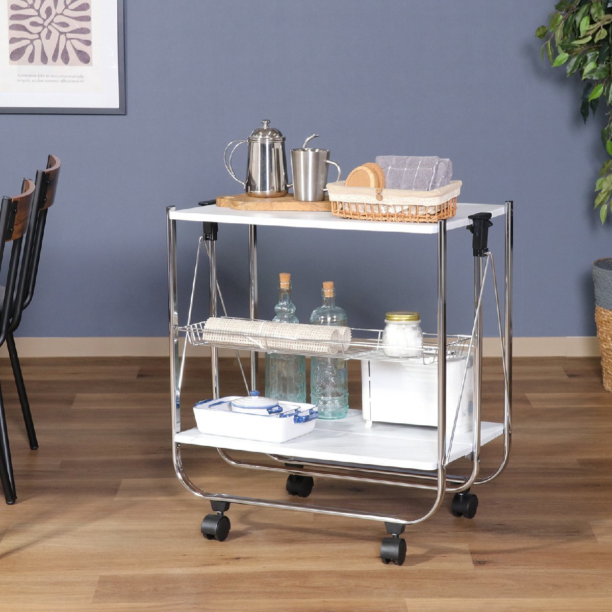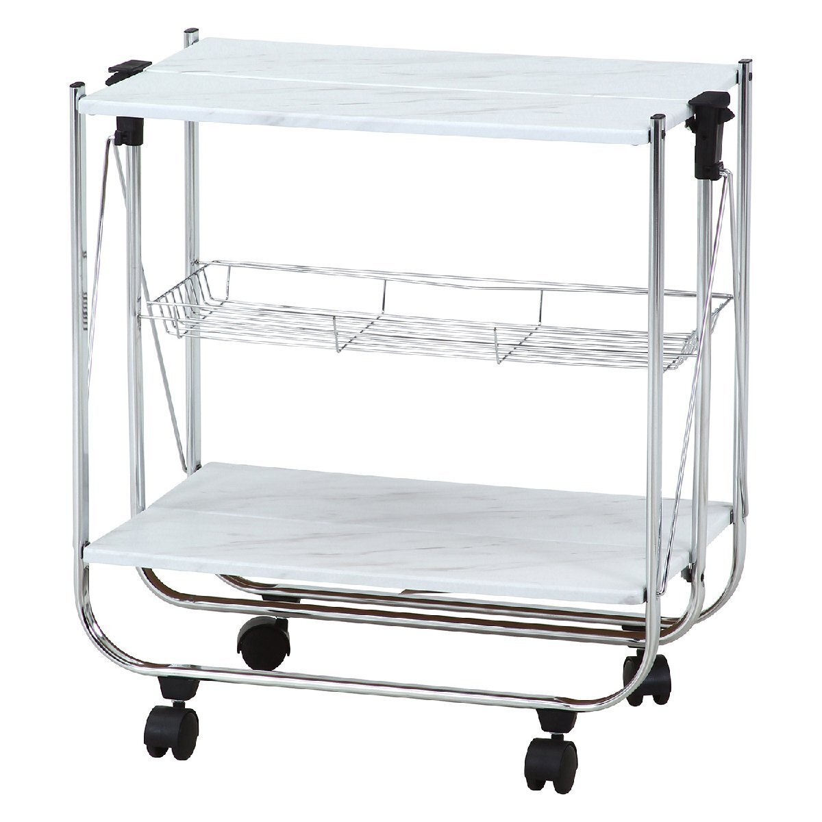 | 備 考 | ■食事を運んだり炊飯器の台として便利です。 ■不要の時は折り畳んで収納できます。 ■おしゃれでスタイリッシュなワゴンです。 |