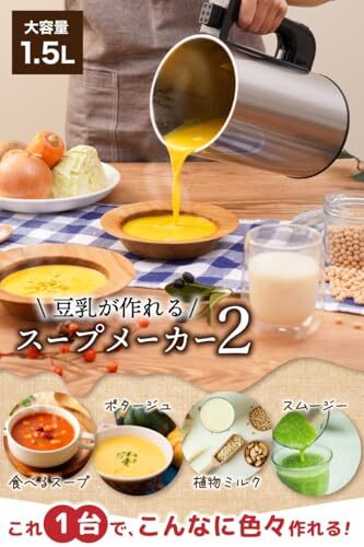 【好きな具材を入れるだけ】 余った野菜など、好きな食材を入れるだけで、簡単にごちそうスープに! ほったらかしでOKなスープメーカーは、1.5Lと大容量! 家族全員分、冷凍保存用など、一度にたくさん本格スープが作れます。