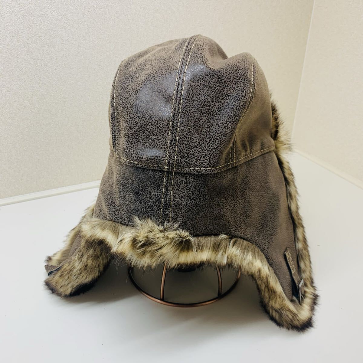 フェイクレザー パイロットキャップ 耳当て付き 裏ボア 防寒帽 冬用 トラッパーハット アウトドア バイク スキー 登山 男女兼用 56-58cm