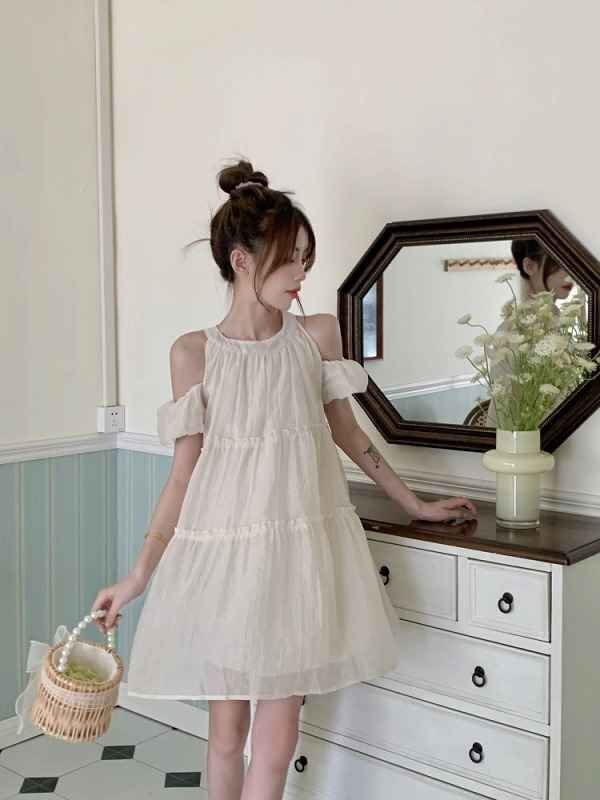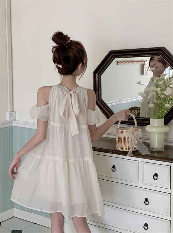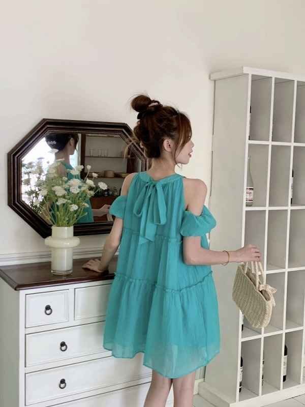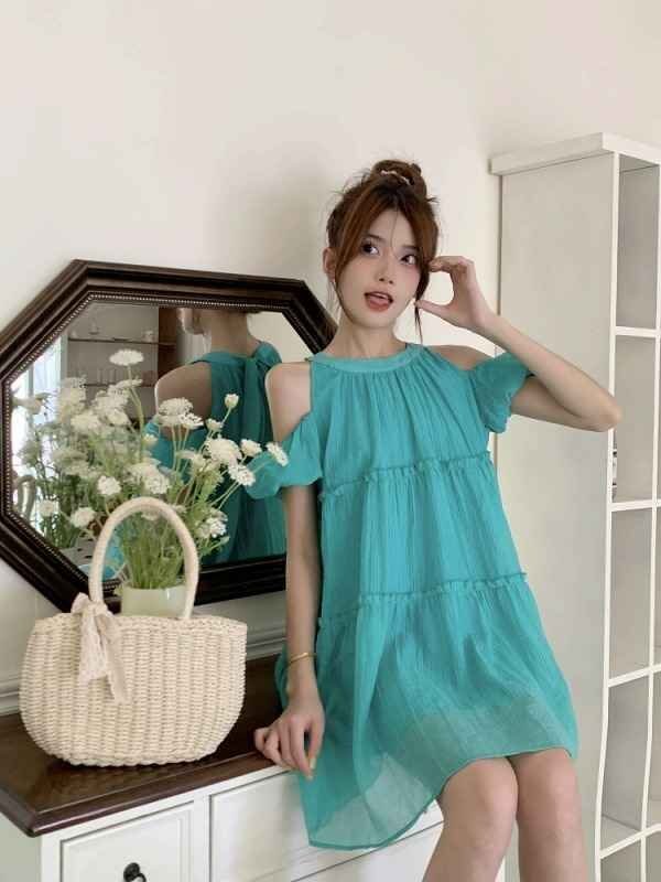 【M】着丈約83cm バスト約94cm 袖丈約13cm ウエスト約80cm 裾周り約214cm